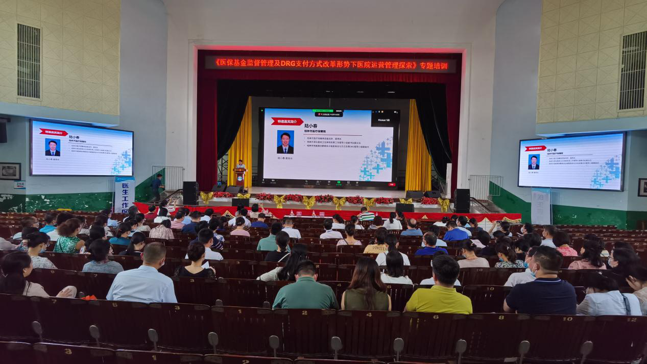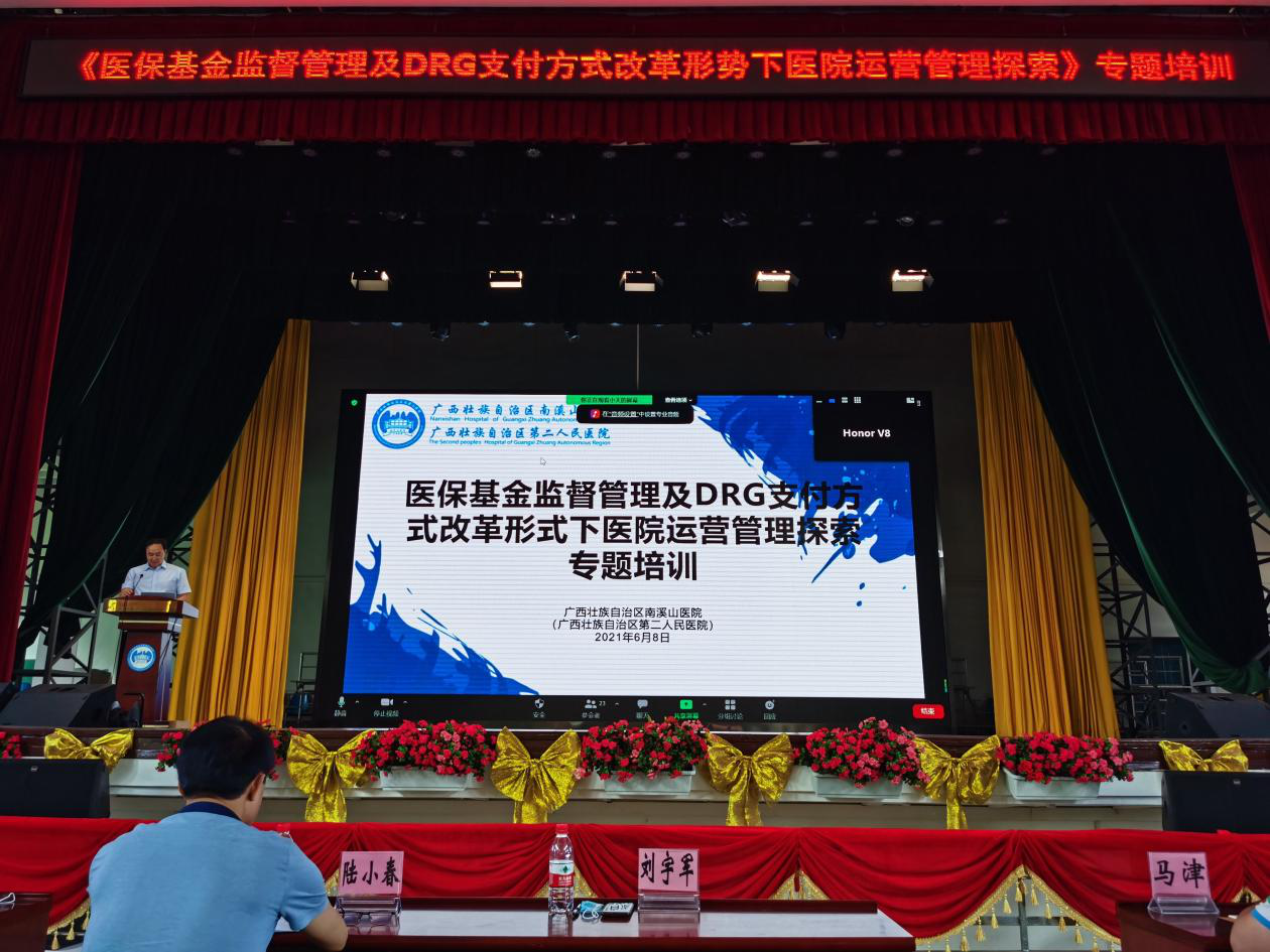 同时,该院也积极学习借鉴先进省市的DRG管理经验,6月3日至5日派出代表团参加第五届全国疾病诊断相关分组(DRG)论坛,6月8日在该院大礼堂举办《医保基金监督管理及DRG支付方式改革形式下医院运营管理探索》专题培训,邀请桂林市医疗保障局副局长陆小春就DRG付费改革相关政策及现阶段成效进行现场培训及解读,利用视频会议平台邀请浙江大学医学院附属第一医院的陈作兵副院长及武汉市中心医院的冯革奇总会计师,分别为该院职工带来《DRG支付改革下医院如何控制运营成本》及《DRG支付改革下的绩效分配探索》的在线主题演讲。
