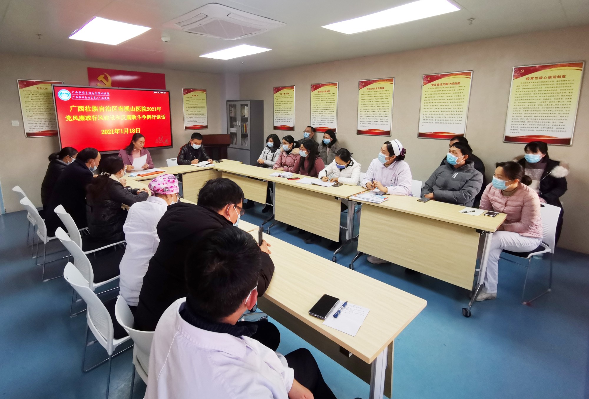 为落实全面从严治党要求,压实压紧管党治党责任,推进谈心谈话制度常态化、长效化,1月4日至1月20日,广西壮族自治区南溪山医院党员领导干部在领导班子集体谈话结束后,分成6个组深入49个在职党支部、79个科室,组织开展了党风廉政行风建设和反腐败斗争例行谈话活动。