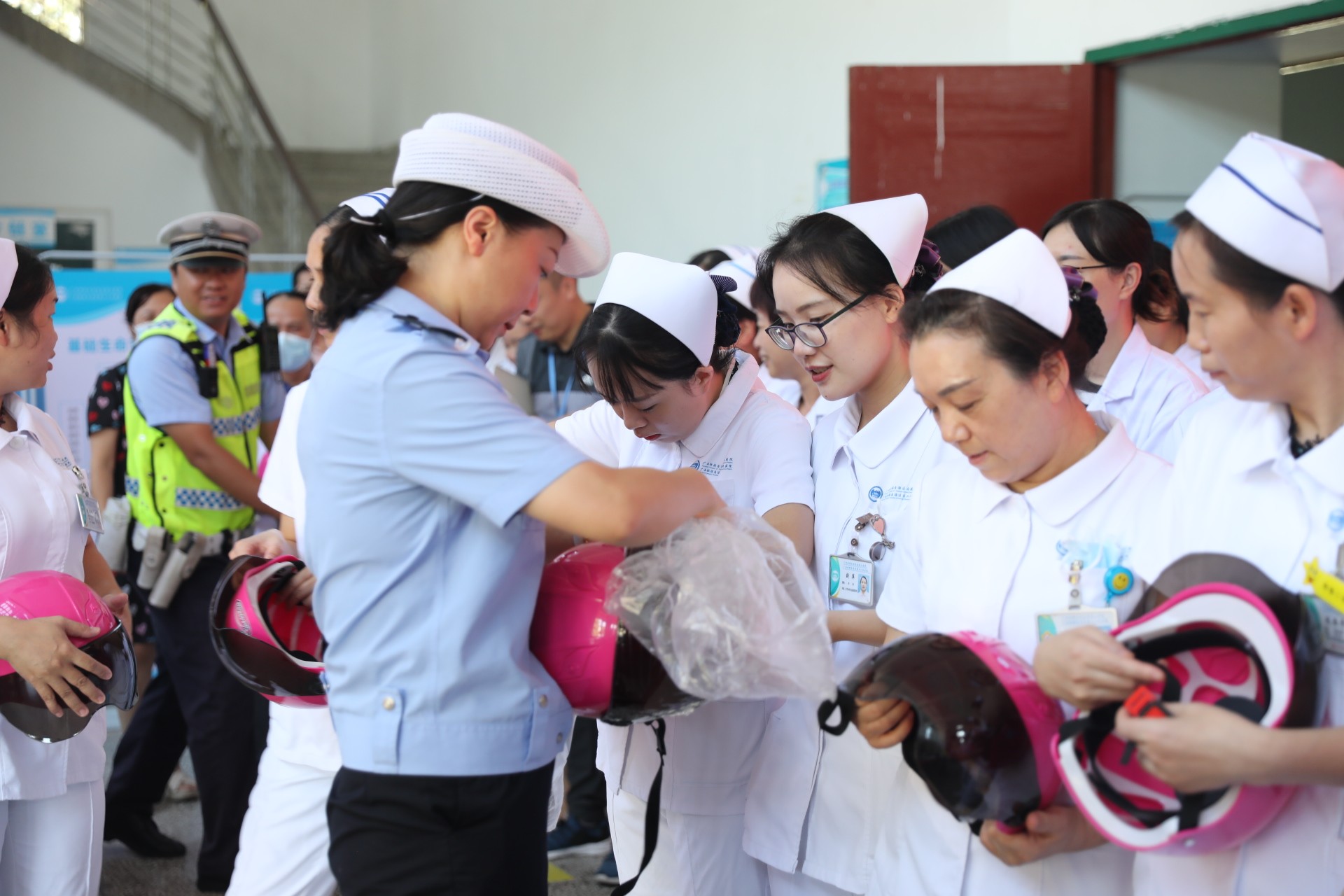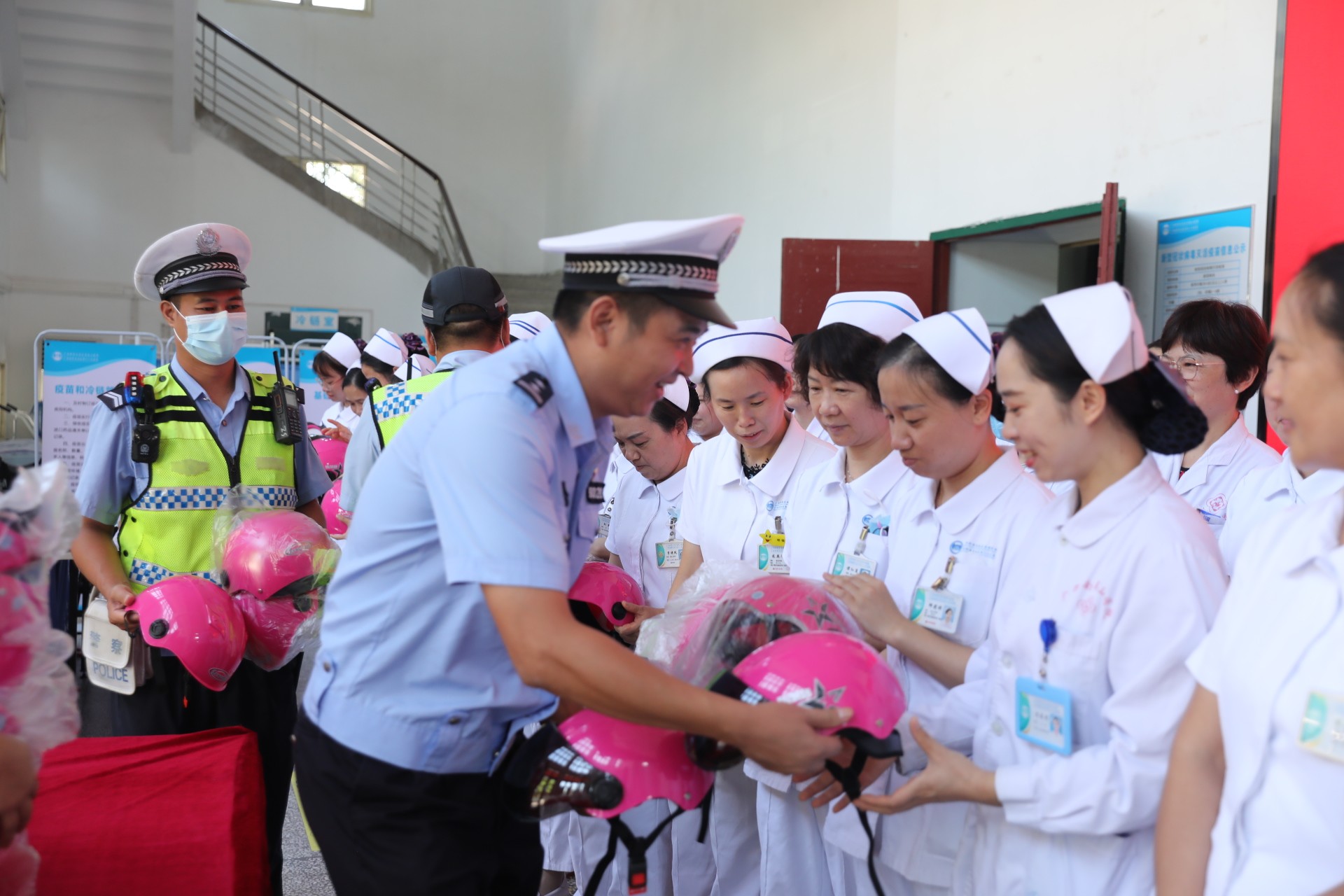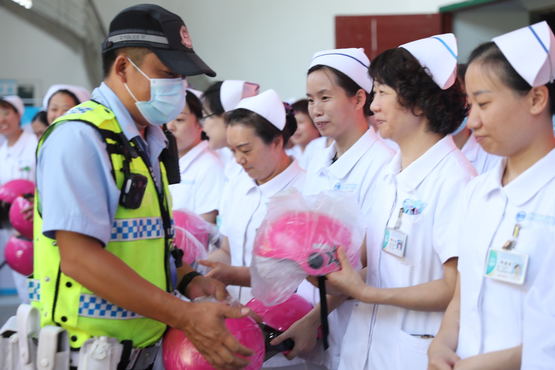 象山交警大队副大队长石全有向白衣天使赠送安全头盔