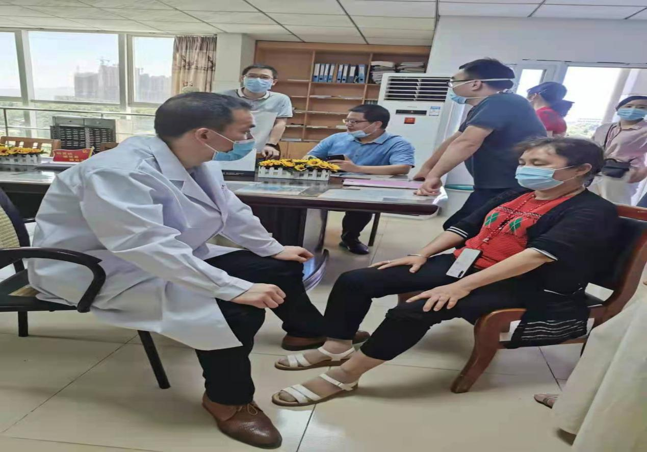 会后,该支部所在的关节外科及运动医学科到灵川县医院骨科进行业务交流活动,联合诊治了三名髋膝关节疼痛病人。