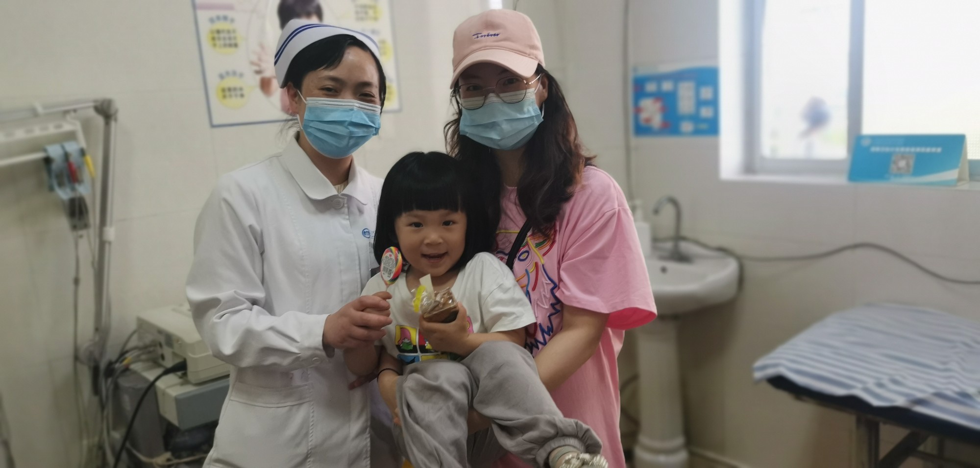 6月1日,南溪山医院急诊科护士长朱文娟向就诊的小女孩赠送节日