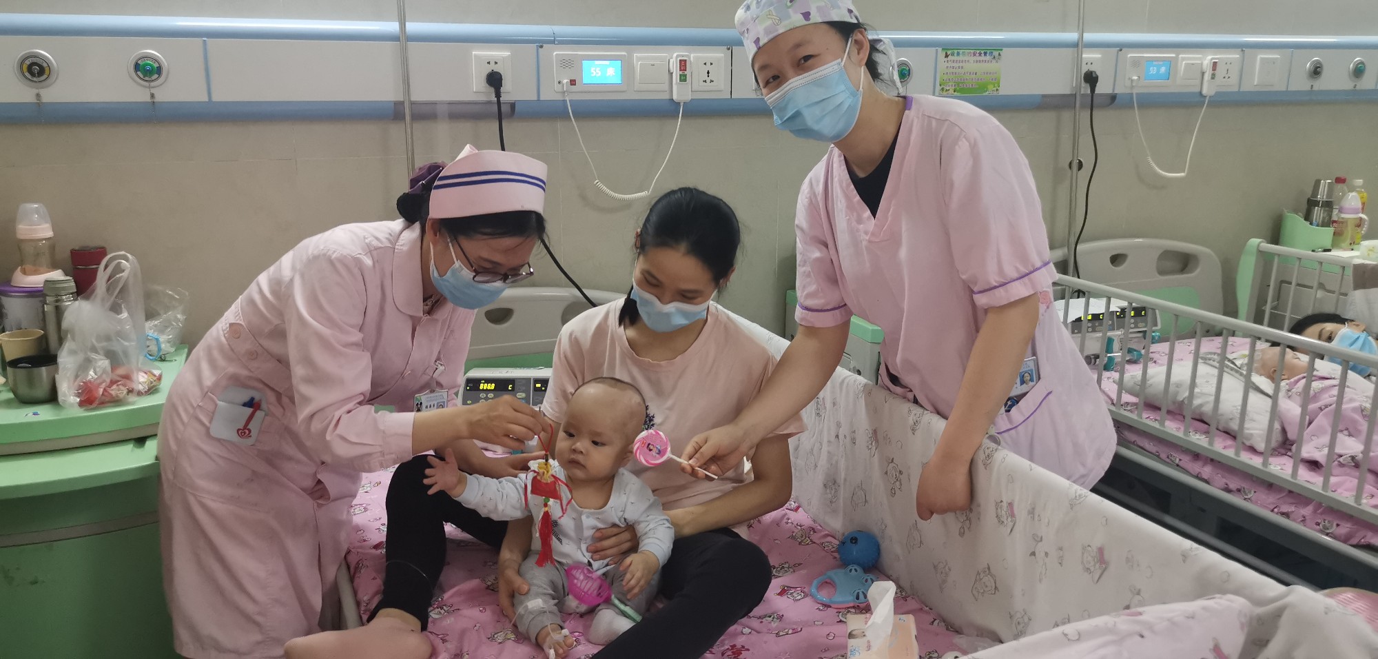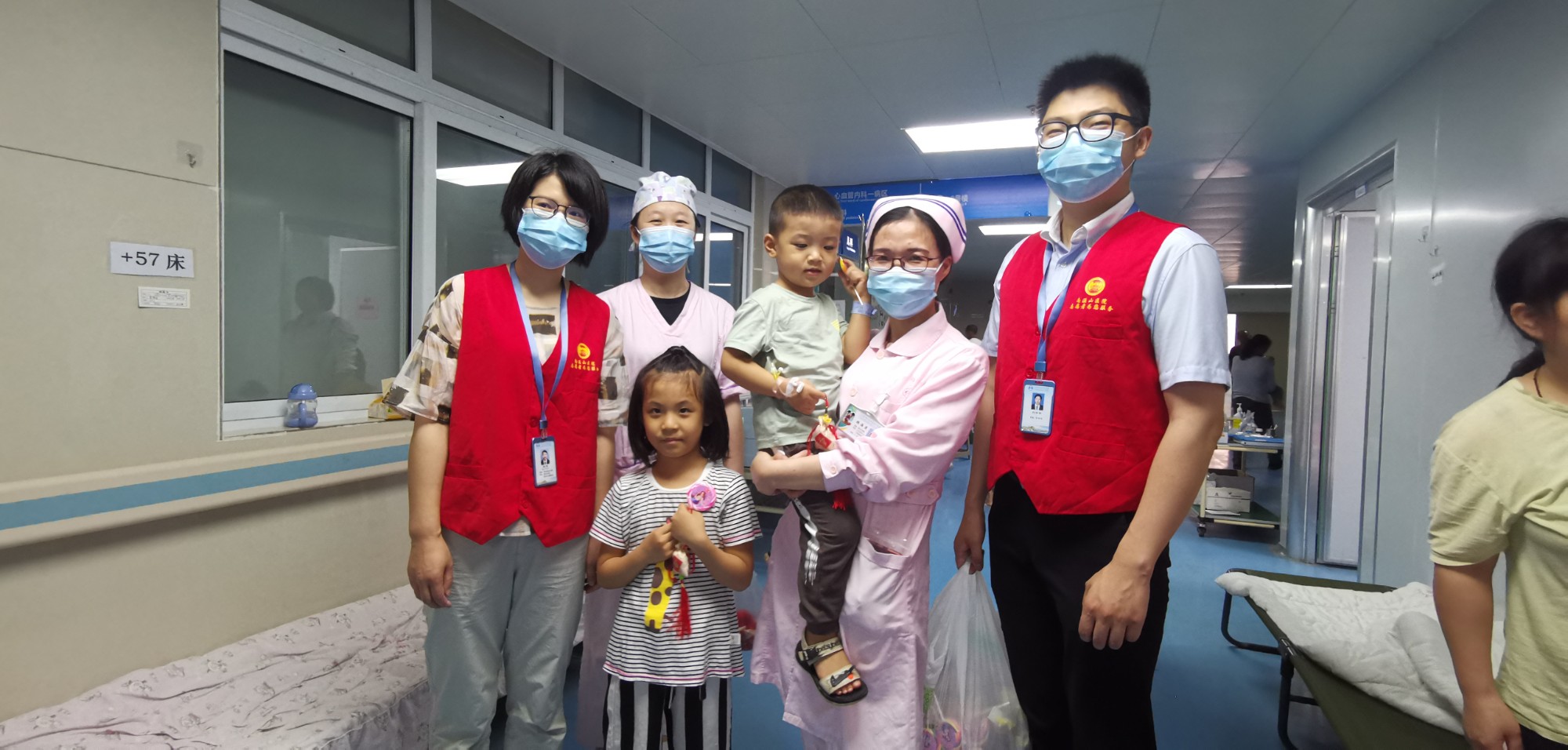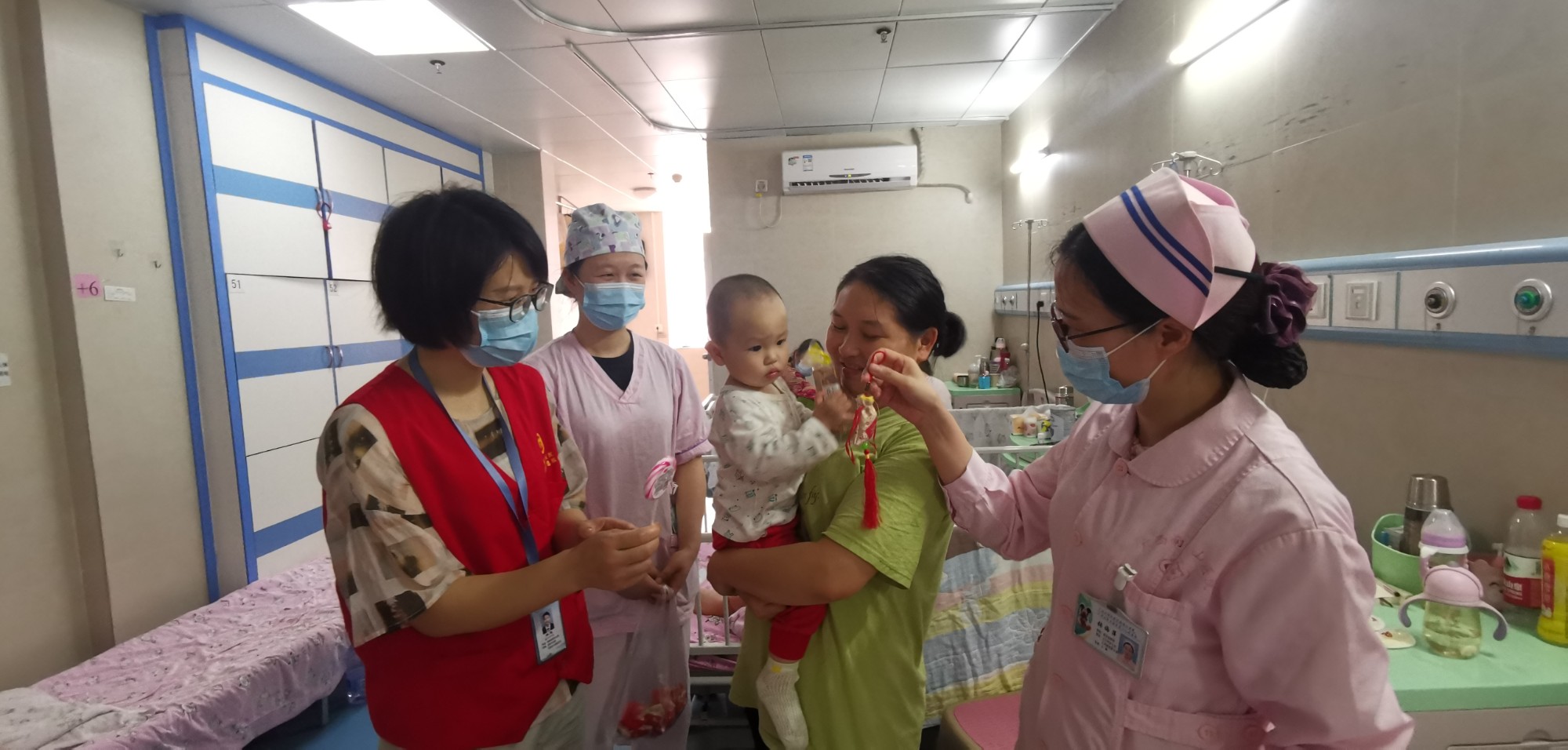 6月1日,在南溪山医院儿科病房,医院团员志愿者和医务人员与孩子们在一起。 张超群 摄