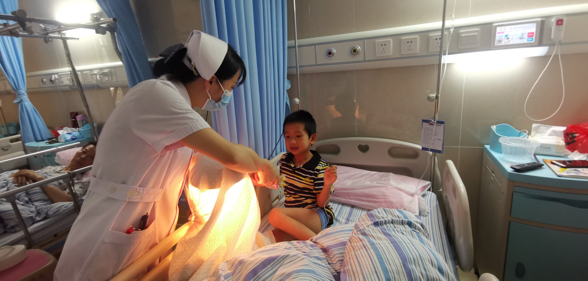 6月1日,一名在南溪山医院骨科住院的小朋友得到了护士姐姐送上的节日礼物十分开心。张超群 摄