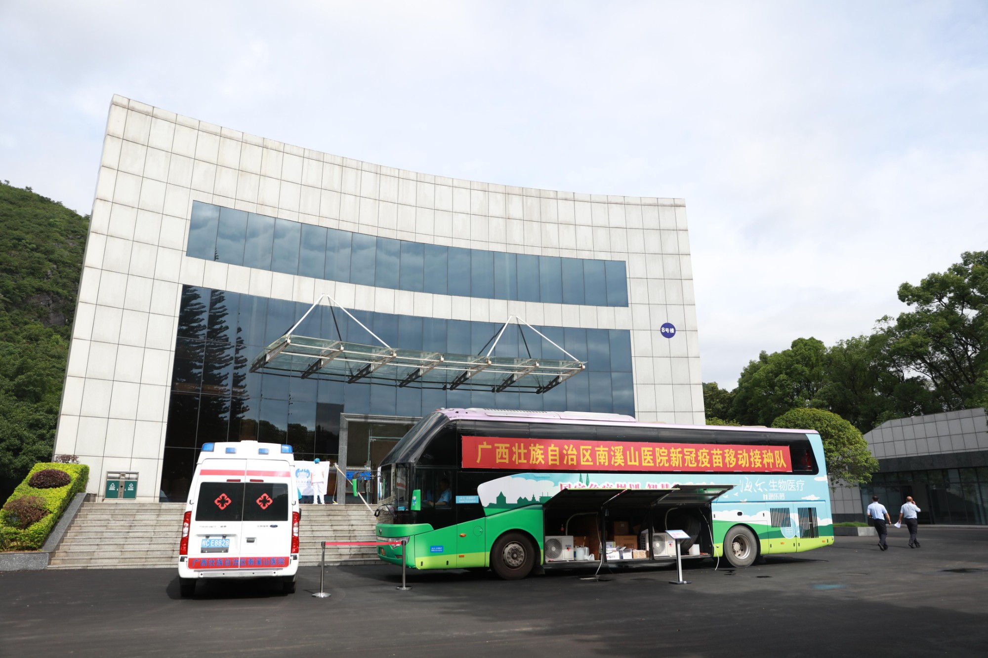 据悉,为确保在最短时间内完成更多剂次的疫苗接种,更好的抗击新冠病毒,筑起人民安全健康防线。自治区南溪山医院从各科室选派了23名医务人员组成疫苗移动接种队于5月28日开始外出执行疫苗接种任务,先后赶赴桂林理工大学博文管理学院、大学生科技园、中国移动广西公司桂林分公司等9家单位,为学生、单位职工和家属及社会群众接种疫苗,让他们就近享受到便捷接种疫苗的福利,保障了他们正常的学习、工作和生活。