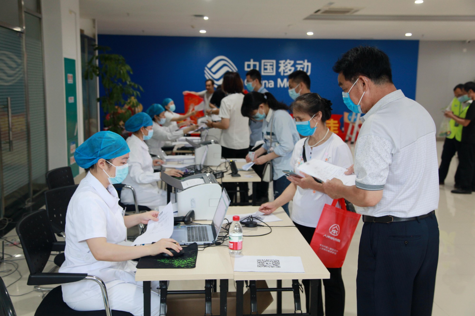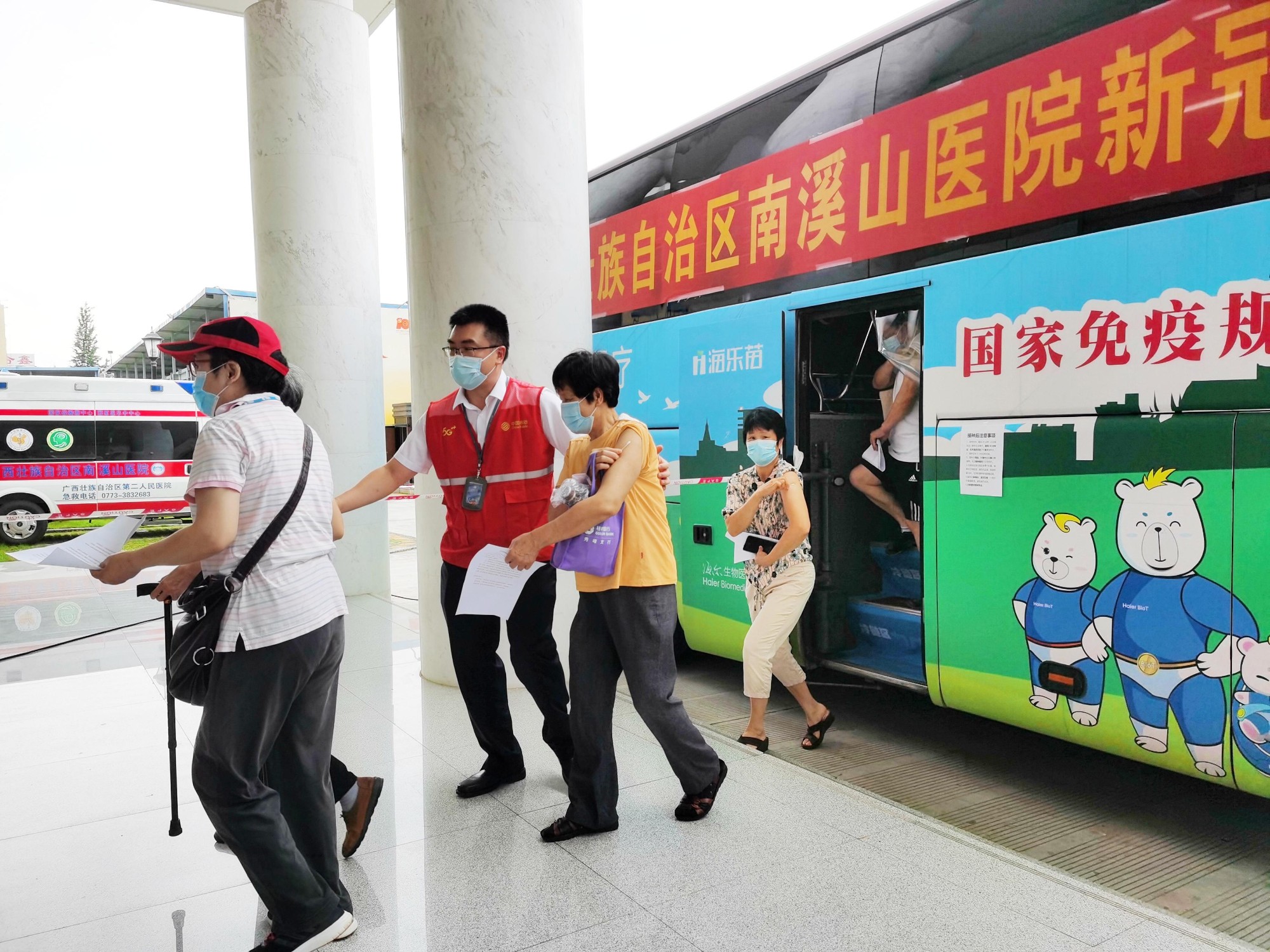 市民在移动接种队帮助下有序接种疫苗