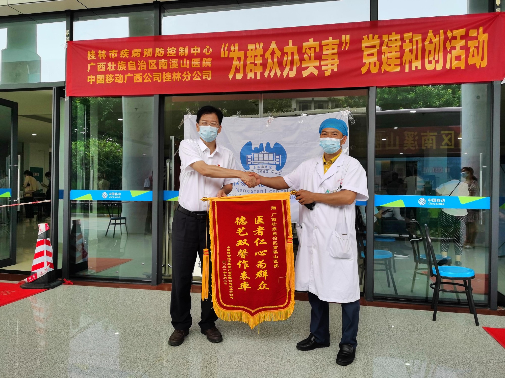 中国移动公司为南溪山医院疫苗移动接种队送上锦旗表示感谢