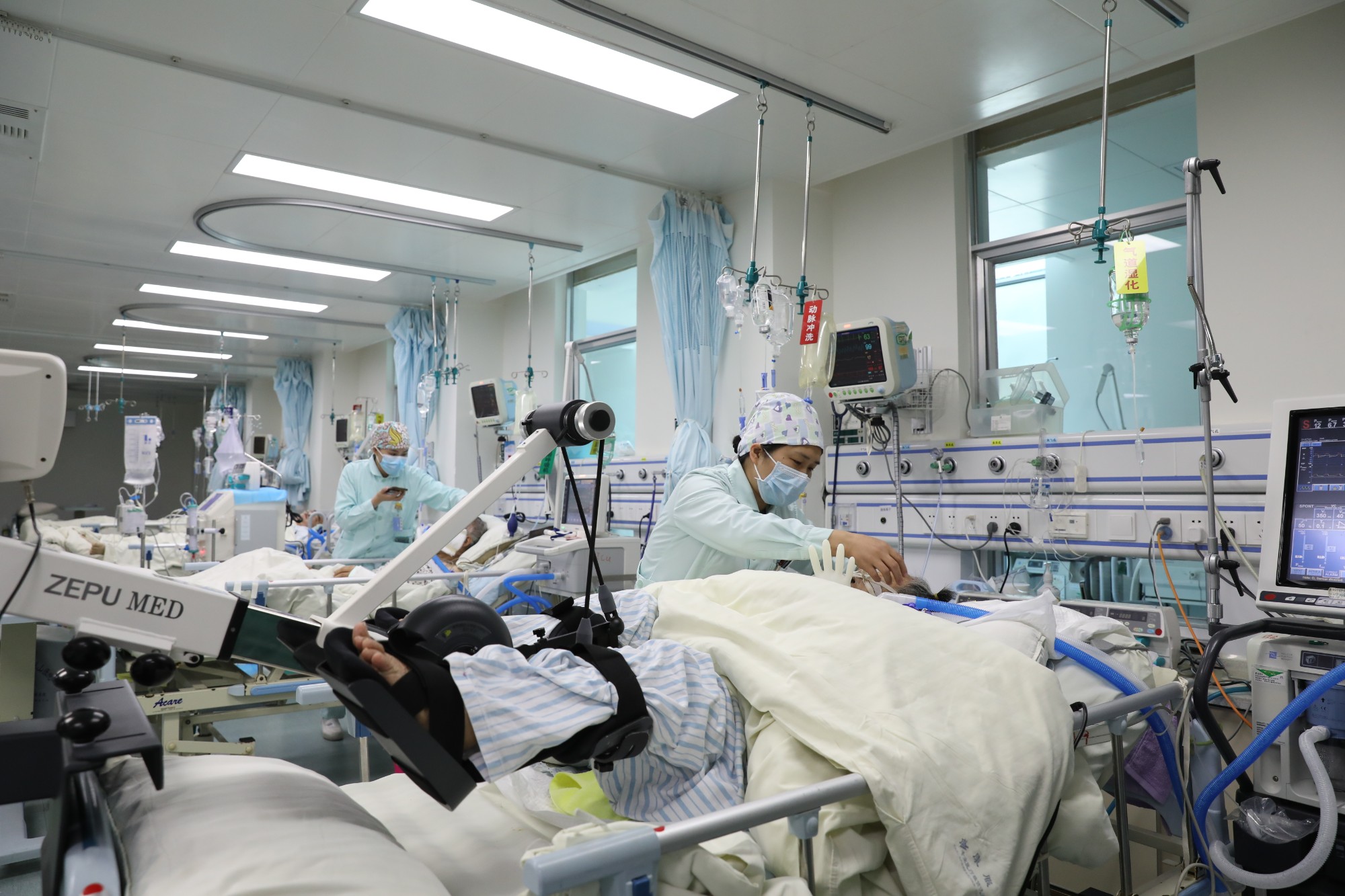 3.自治区南溪山医院ICU护士正在为患者进行康复护理