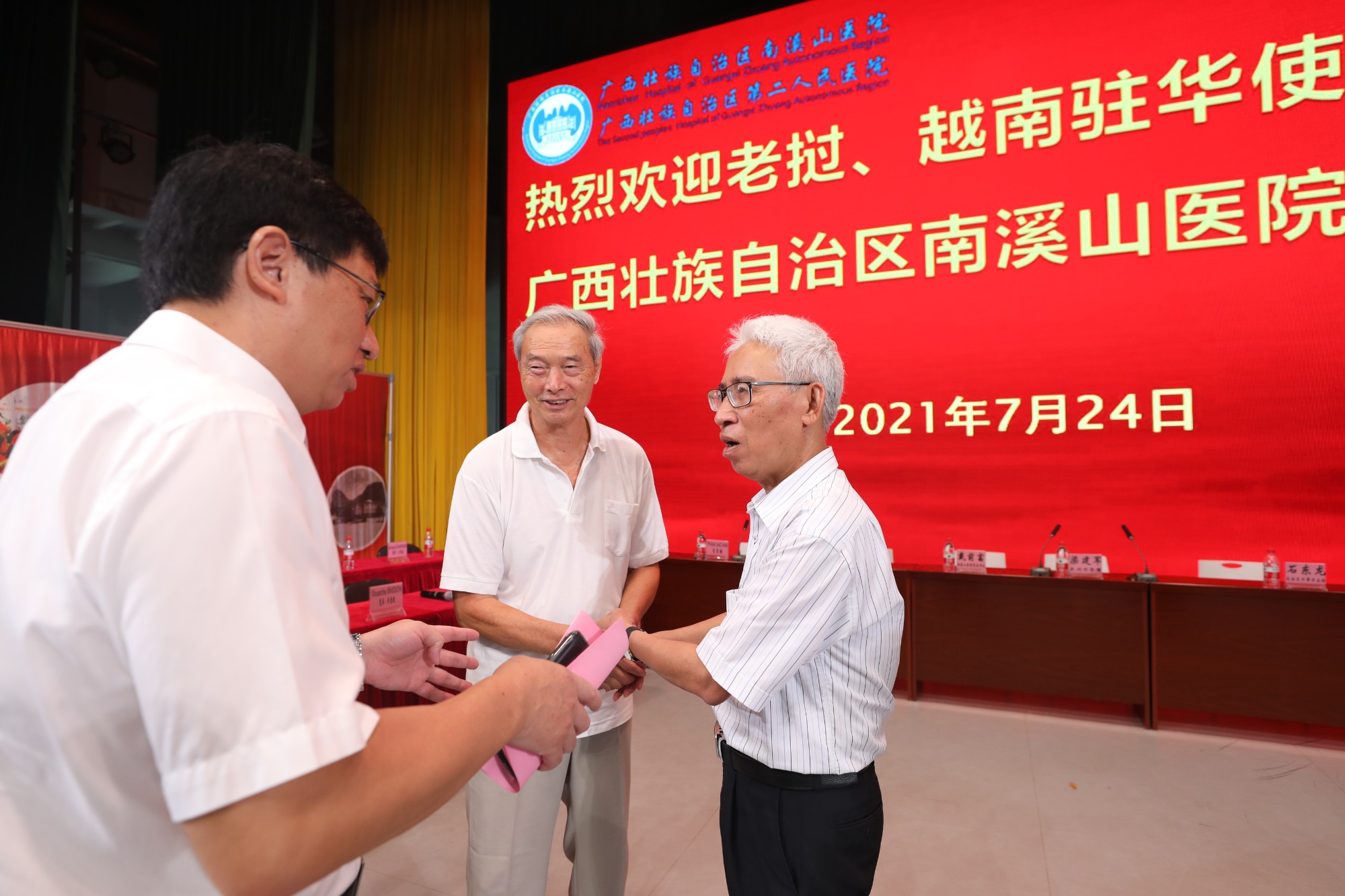越南驻华大使范星梅与南溪山医院援越时期职工贾太昌亲切交流