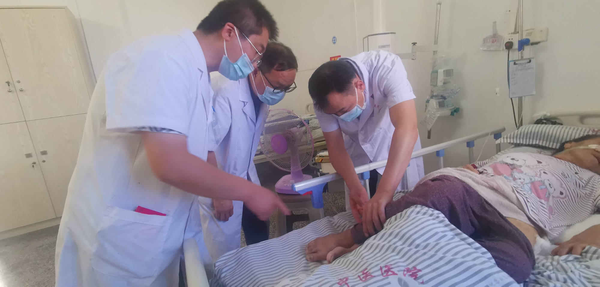 南溪山医院血管外科主任胡长付博士在兴安县中医医院查看病人病情--张超群 摄