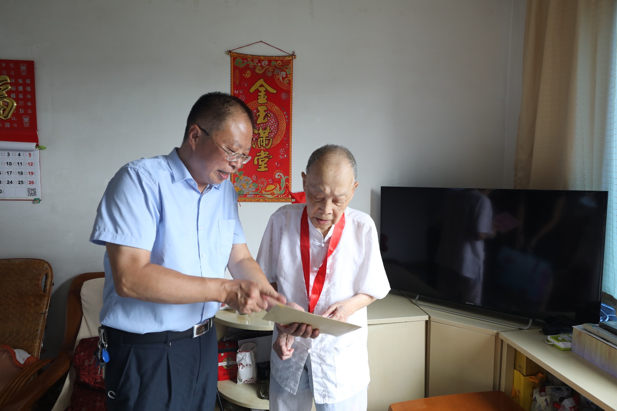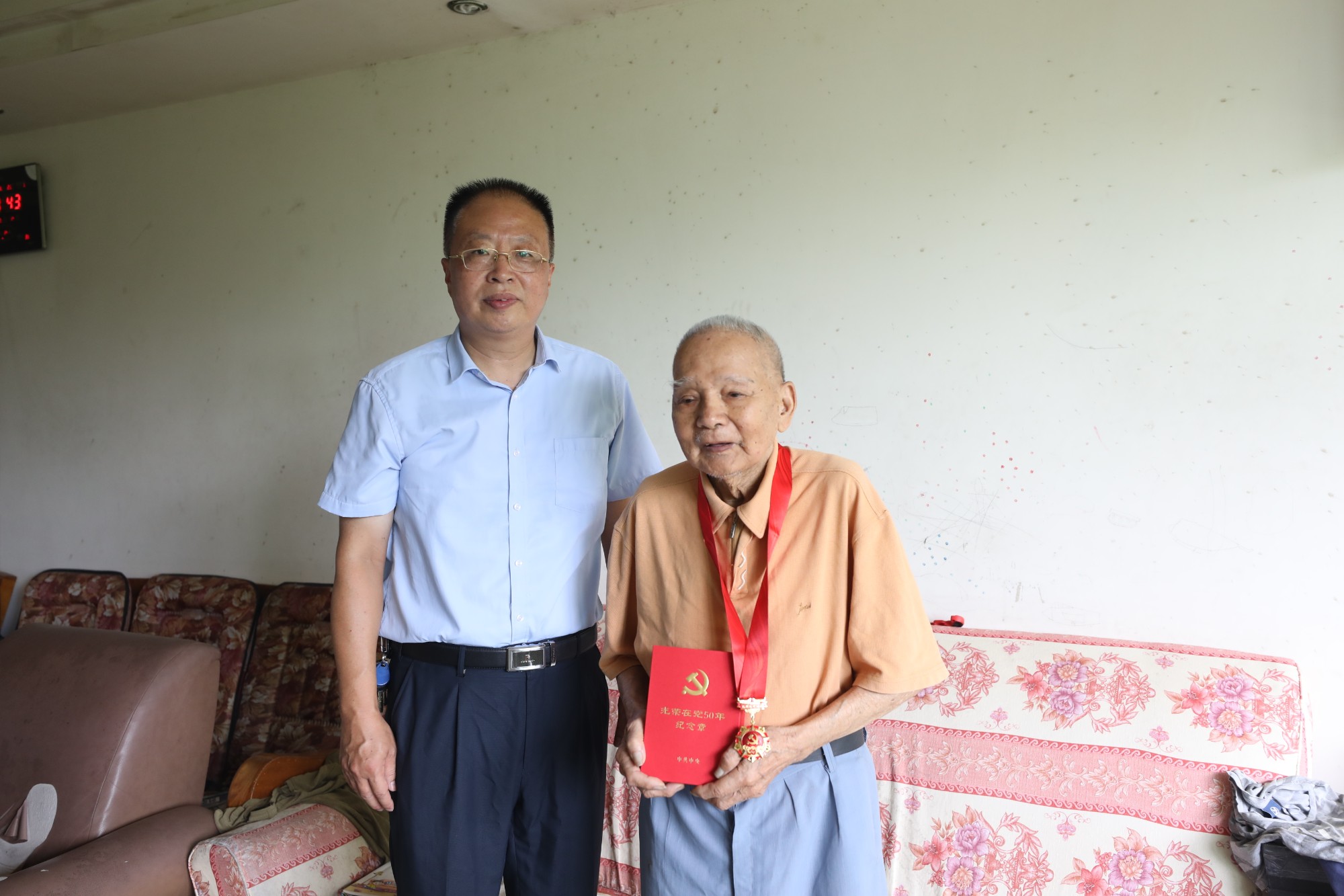 南溪山医院党委组织人员到病房慰问老党员、颁发在党50年纪念章。