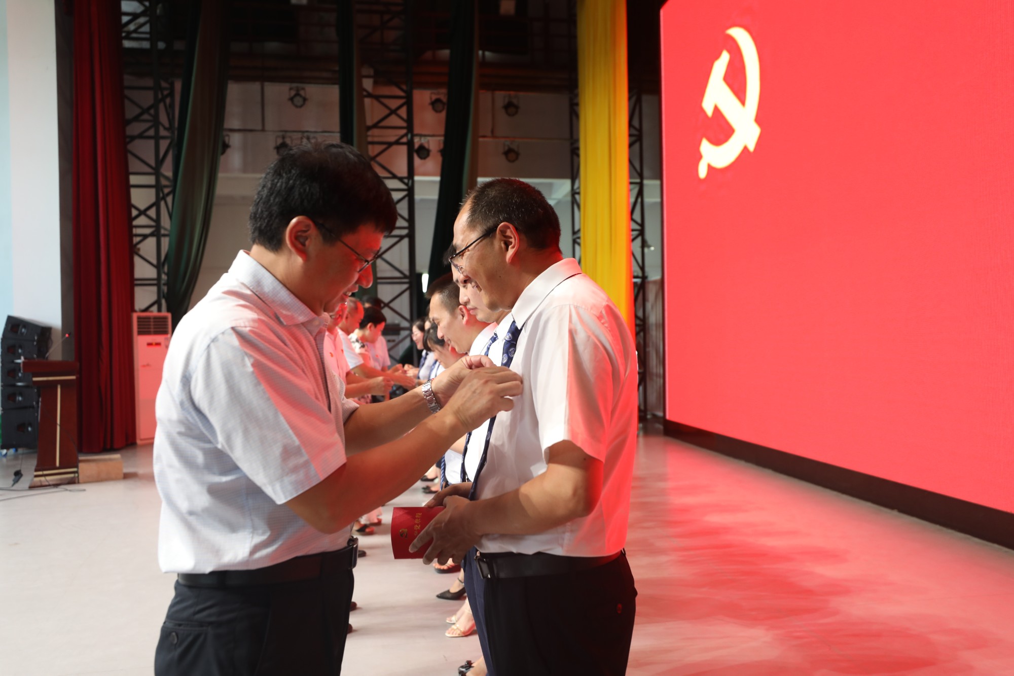 南溪山医院党委书记戴前富为新党员佩戴党徽