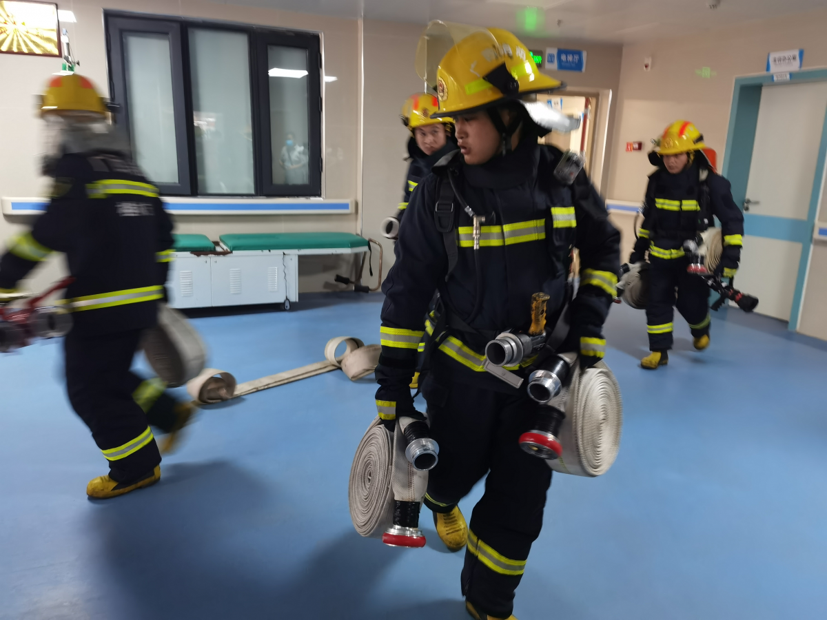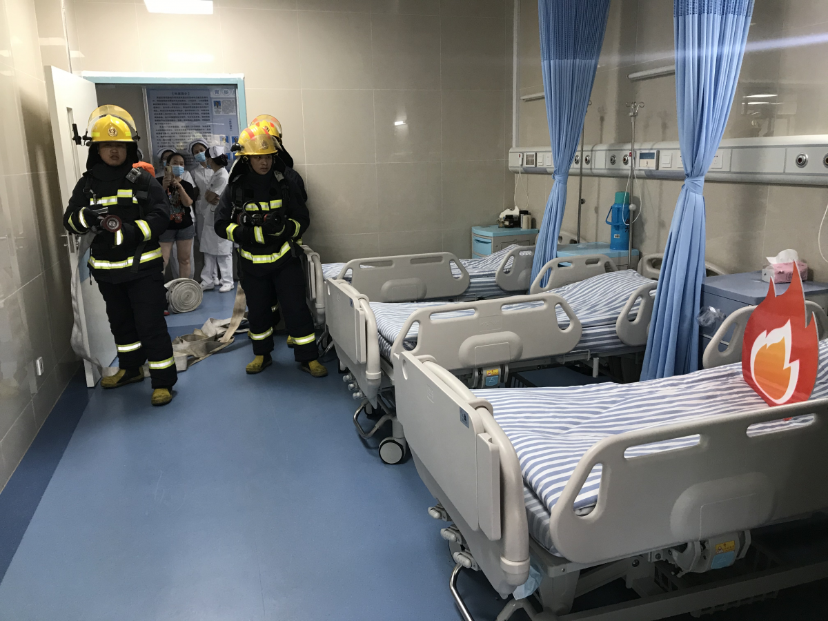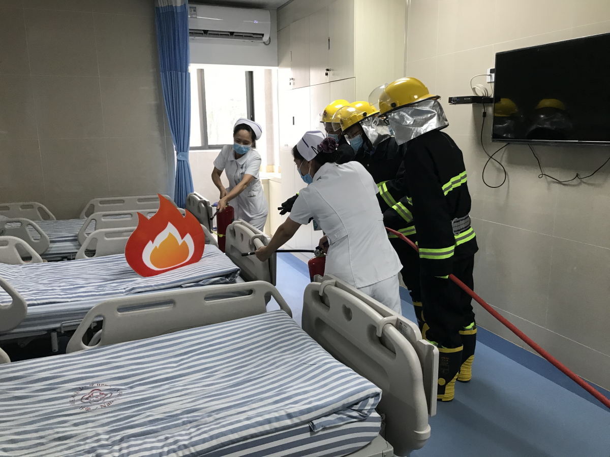 当班医护人员和微型消防站的队员形成灭火第一梯队对初起火灾实施扑灭