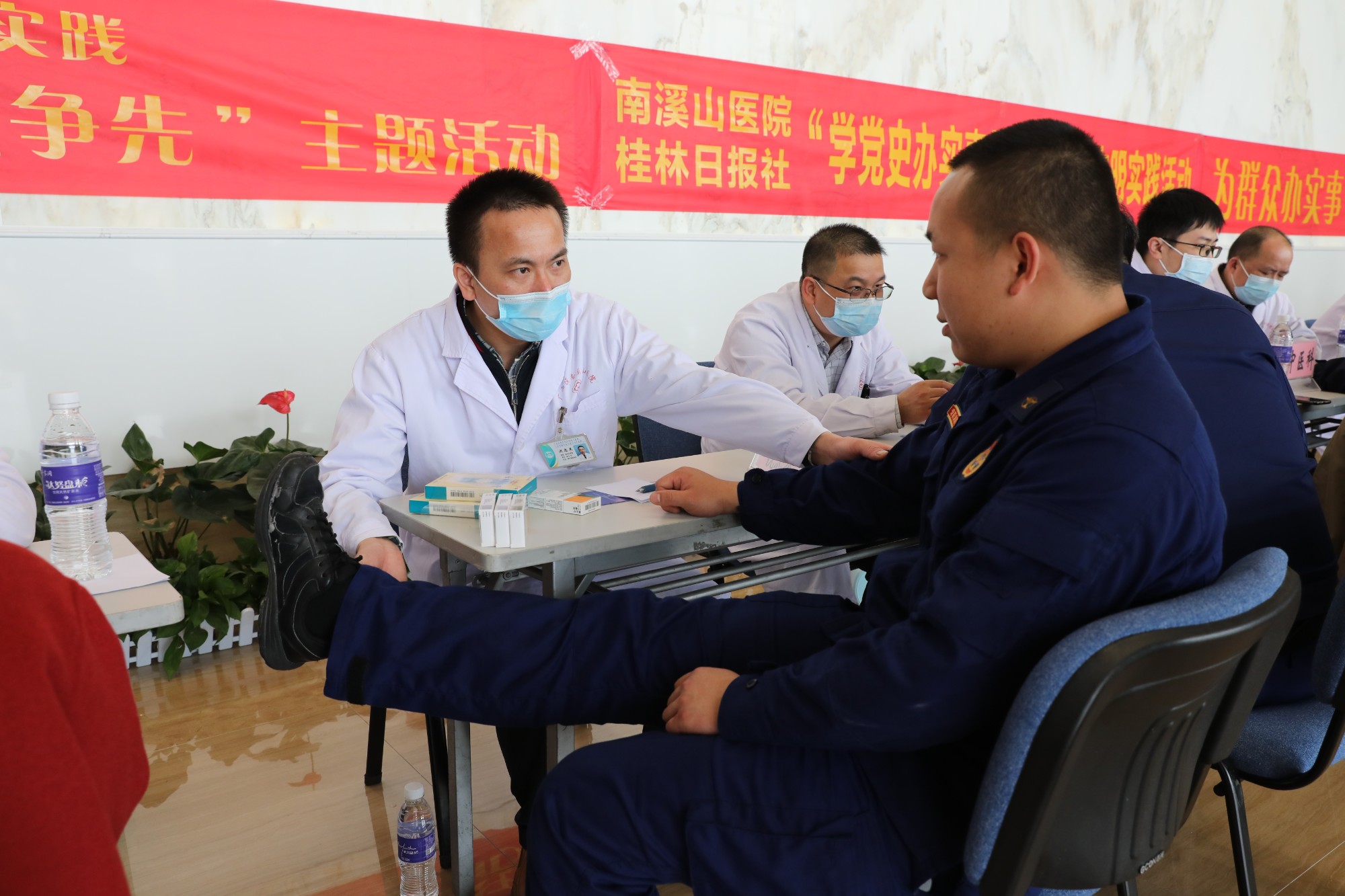 4月8日,广西壮族自治区南溪山医与桂林日报社联合开展“学党史办实事”健康义诊文明实践活动,为报社及消防支队等周边单位工作人员和市民200余人进行了健康义诊,送医送药。