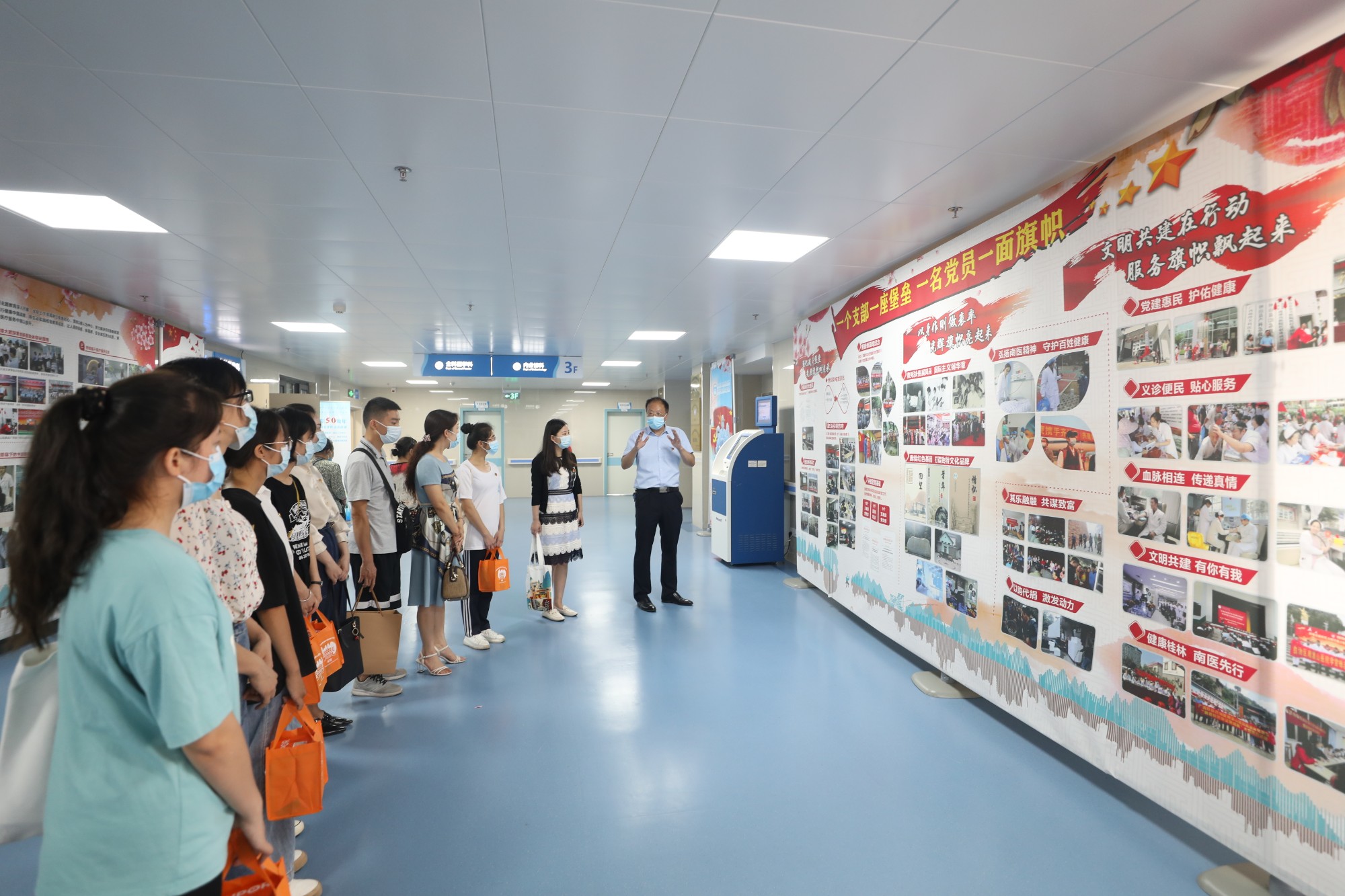学习交流活动结束后,桂林师专的学生和老师还专程到五名医学博士所在科室参观,了解医务人员的工作环境和状况。随后他们在医院有关领导和人员的陪同下,桂林师专的老师、学生一行11人还参观了南溪山医院的党建、抗疫主题的专栏展出。最后,大家还专程来到南溪山医院院史馆参观,领略、感受了南溪山医院独特的历史文化。桂林师专的师生们对南溪山医院党建引领医院文化建设取得的成效,以及医院广大职工发扬厚德精医、大爱担当的南医精神,守护人民健康,救死扶伤,服务社会所做出的突出贡献高度评价。