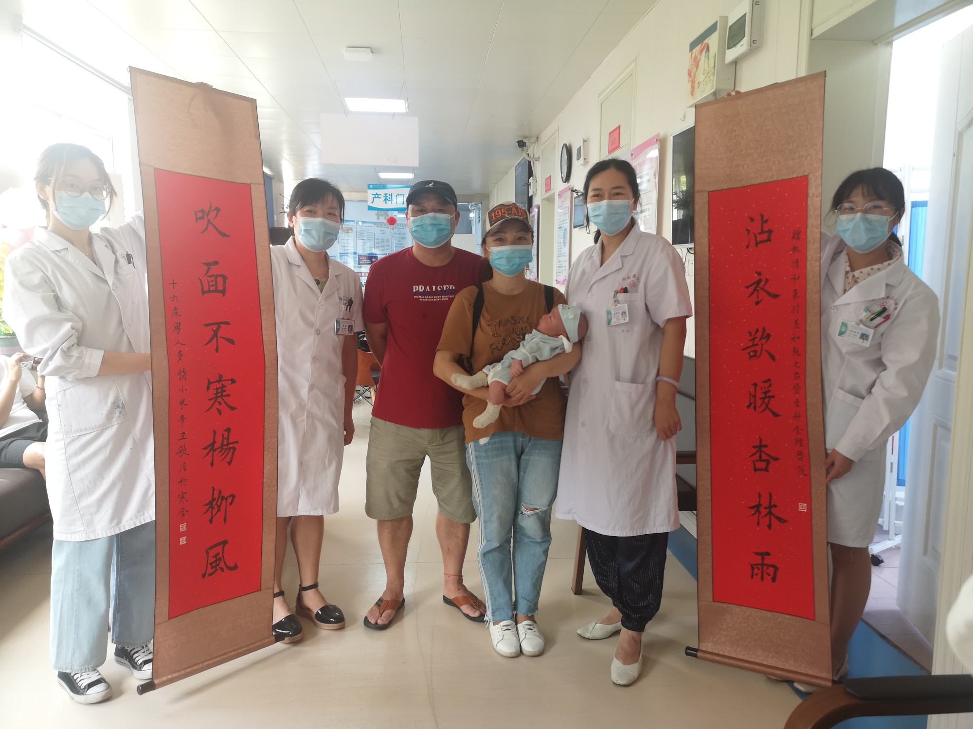 7月8日,通过自治区南溪山医院产科张丽武团队的悉心照顾,周女士诞下一位6斤重的健康宝宝,母子平安。18日上午杨先生一家为张主任送上了一副题字为“沾衣欲暖杏林雨 吹面不寒杨柳风”的对联以感谢张丽武主任的送子之情。