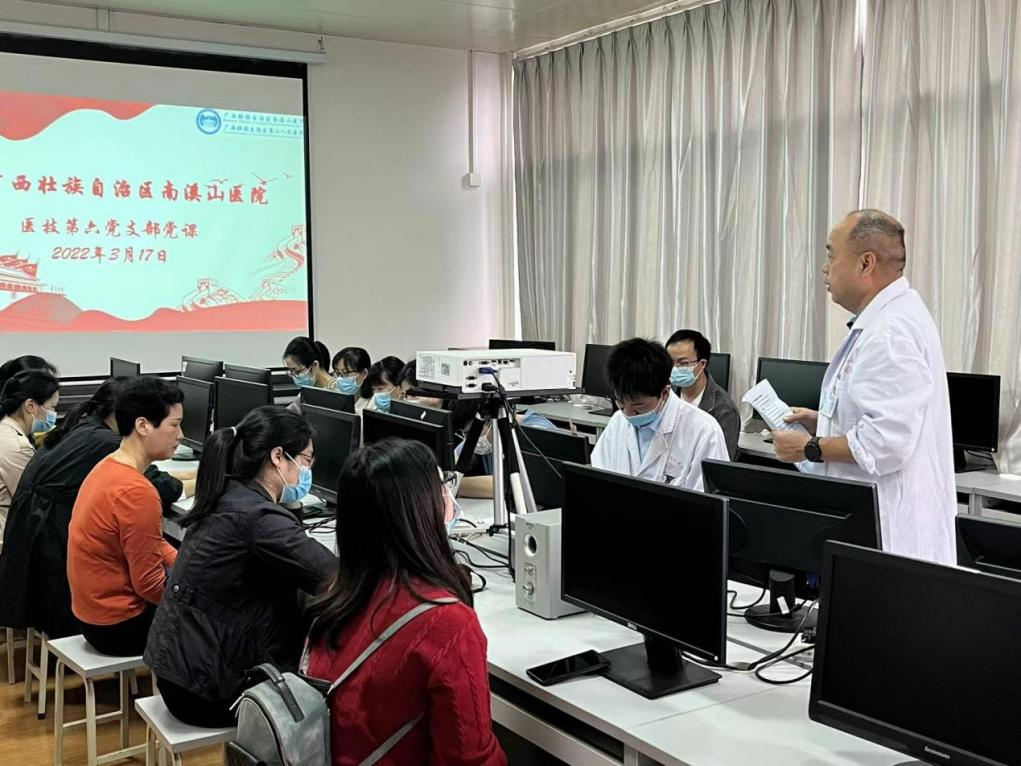 3月17日下午,自治区南溪山医院药学部所在的医技第六党支部开展“不忘初心,牢记使命”主题教育党课活动,该院副院长蒋广元进行授课,支部全体党员参加本次会议。