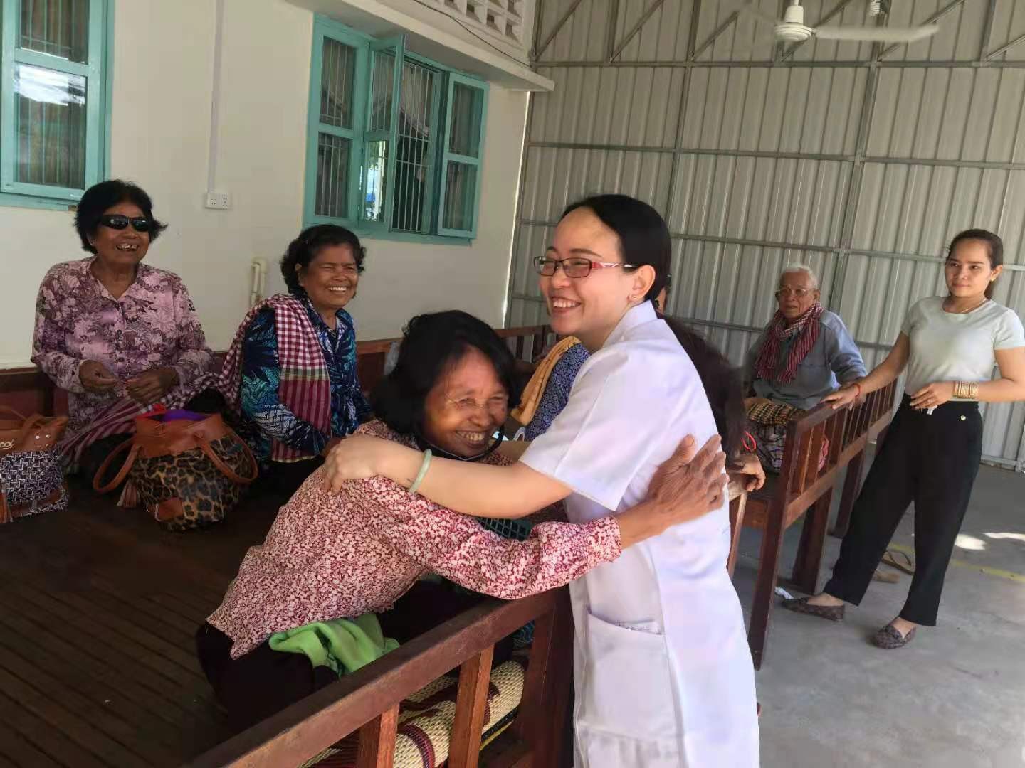 蒋艳华不仅在岗位上尽职尽责,还积极承担起社会责任,多次赴外地参与白内障、青光眼等眼部疾病的诊治工作。2008年蒋艳华作为自治区卫健委“18号复明手术车”项目驻车医生参与了白内障复明手术的实施,完成驻车白内障手术数百例。2018年开始,蒋艳华参与医联体帮扶工作,每年到医联体指导白内障、青光眼等手术、会诊疑难病例。2019年,蒋艳华作为广西“一带一路”柬埔寨磅湛省消除白内障致盲行动第八批医疗队队长,带队赴柬埔寨开展援外医疗工作。在她的带领下,南溪山医院医疗队团结协作、连续奋战,共为571名柬埔寨病人成功实施了白内障手术,使他们重见光明,蒋艳华和医疗队员们被当地人民亲切称为“中国来的光明使者”。经过不懈努力,医疗队圆满完成“一带一路”柬埔寨消除白内障致盲行动任务,用精湛的技术为柬埔寨人民带去光明,为加深中柬两国人民的传统友谊添砖加瓦。