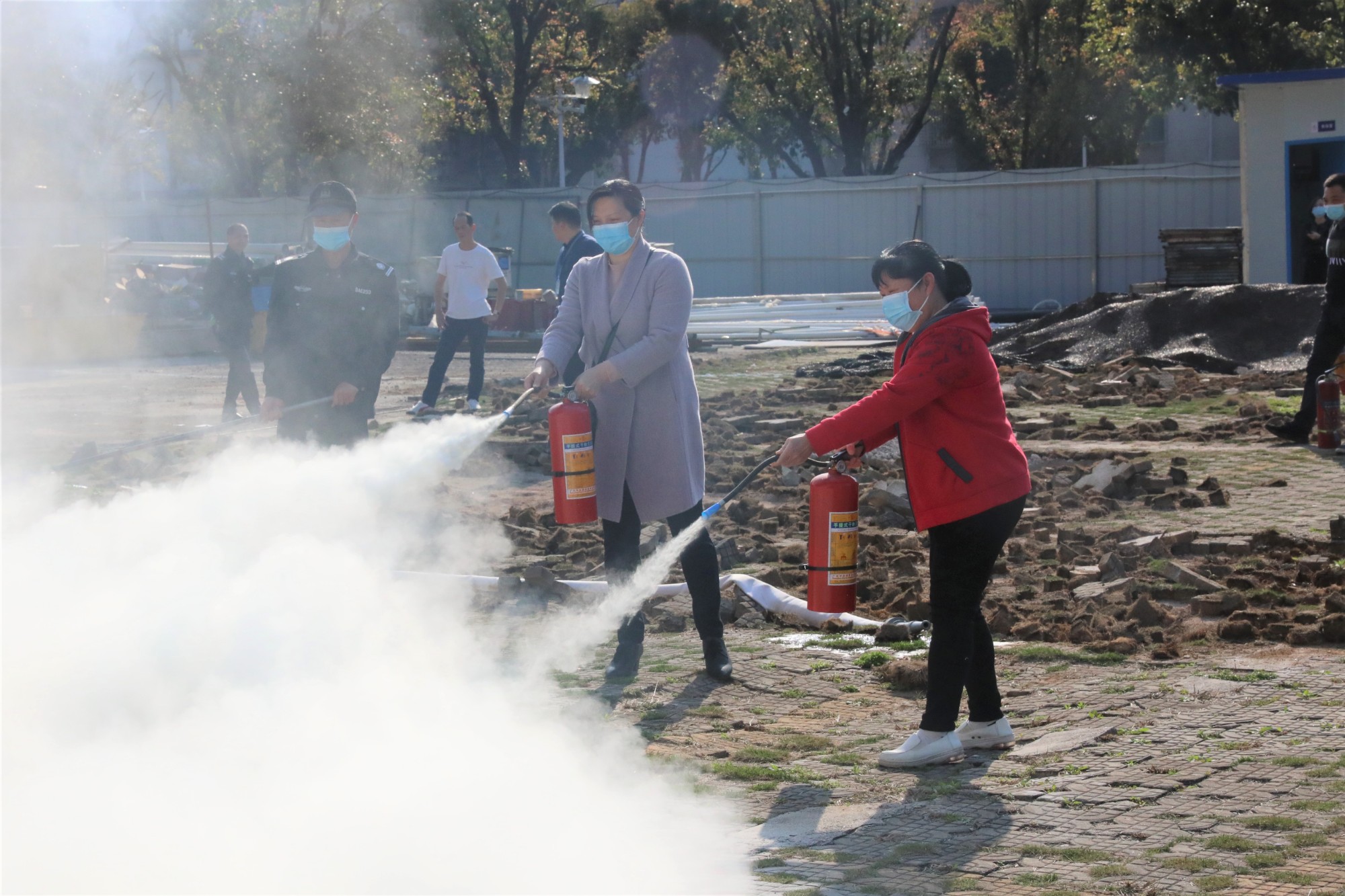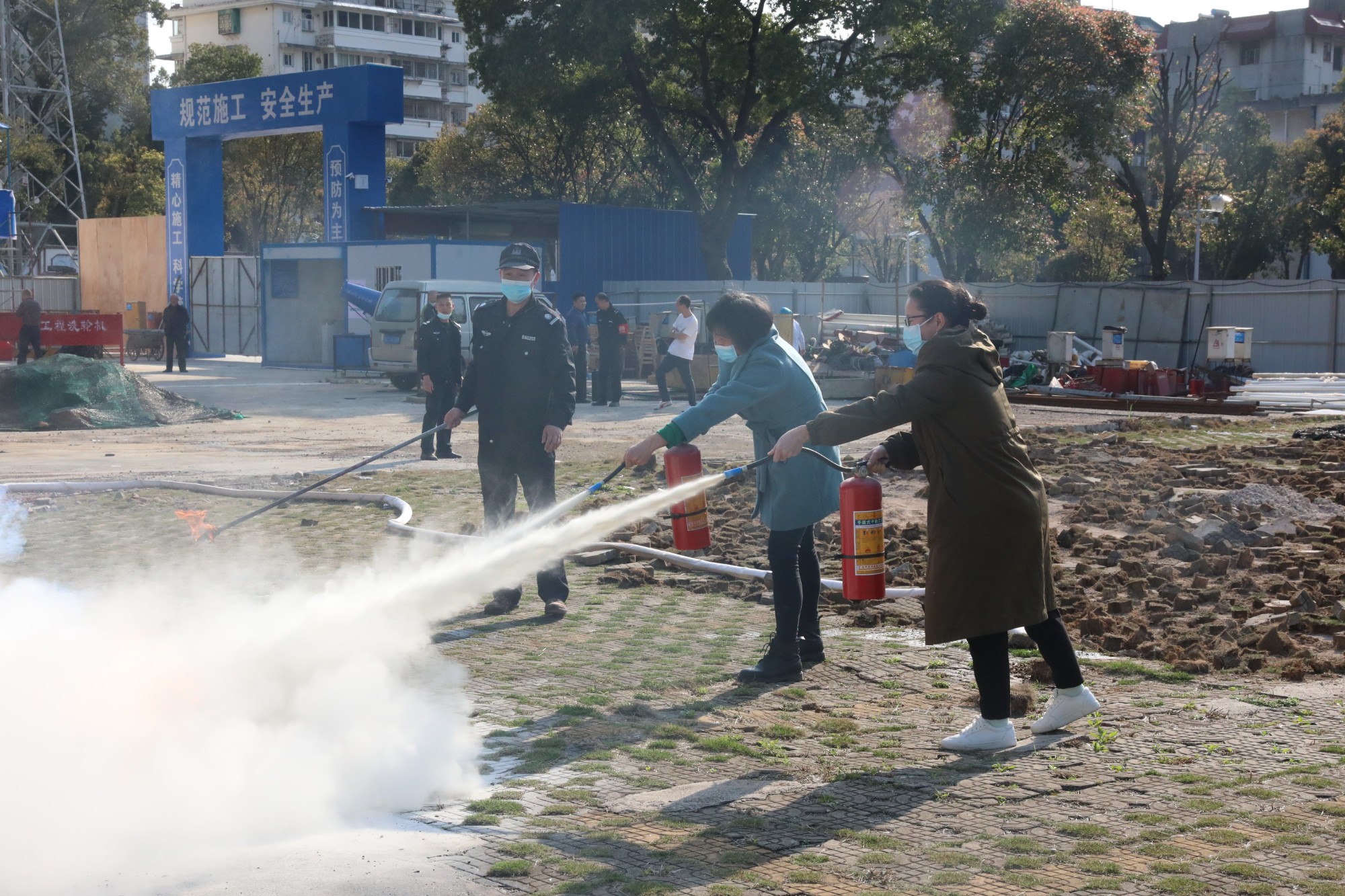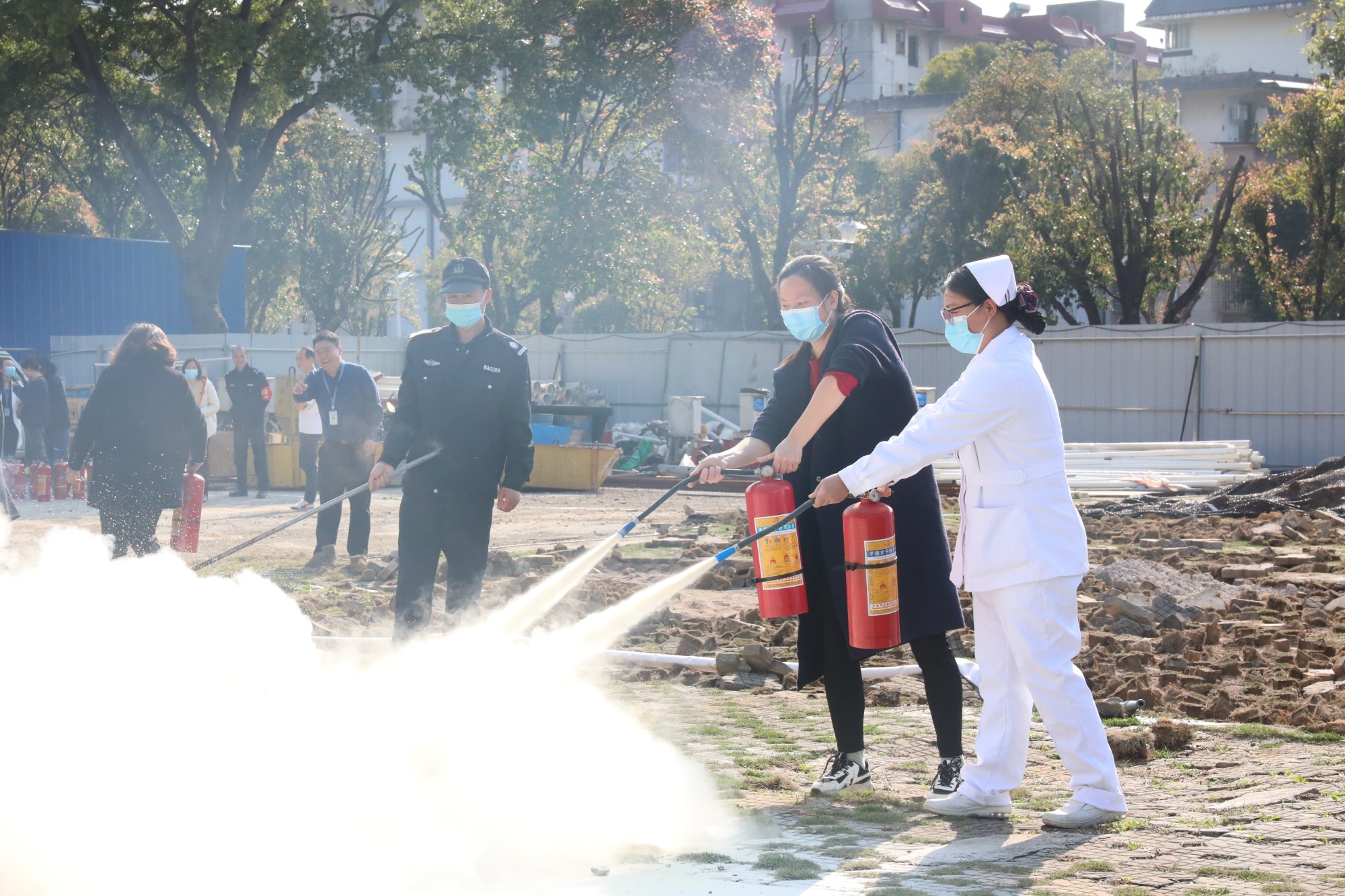 理论培训后,该院保卫科副科长左鹏在演练现场讲解了灭火器使用步骤和注意事项,职工们则依次使用灭火器进行灭火实操,亲身体验灭火技巧。