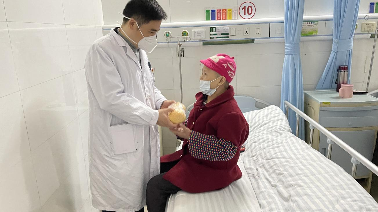 支部书记洪勇为在院患者送上水果