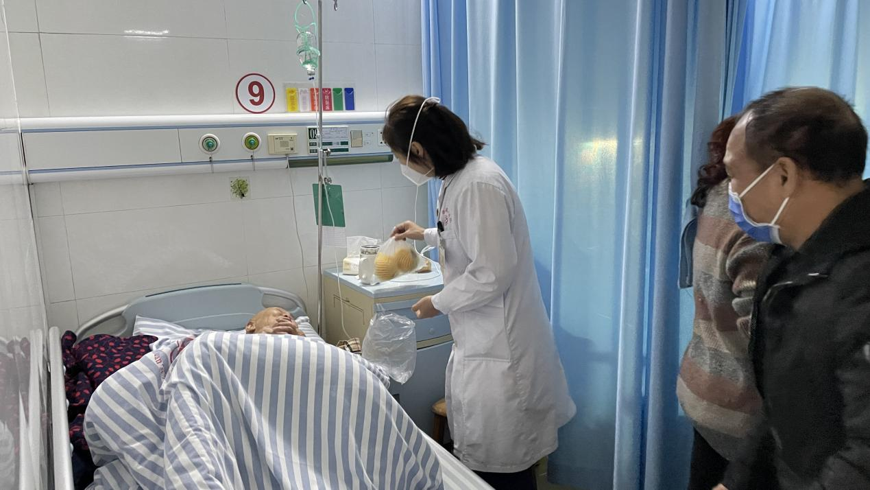 支委张琴琴为在院患者送上水果