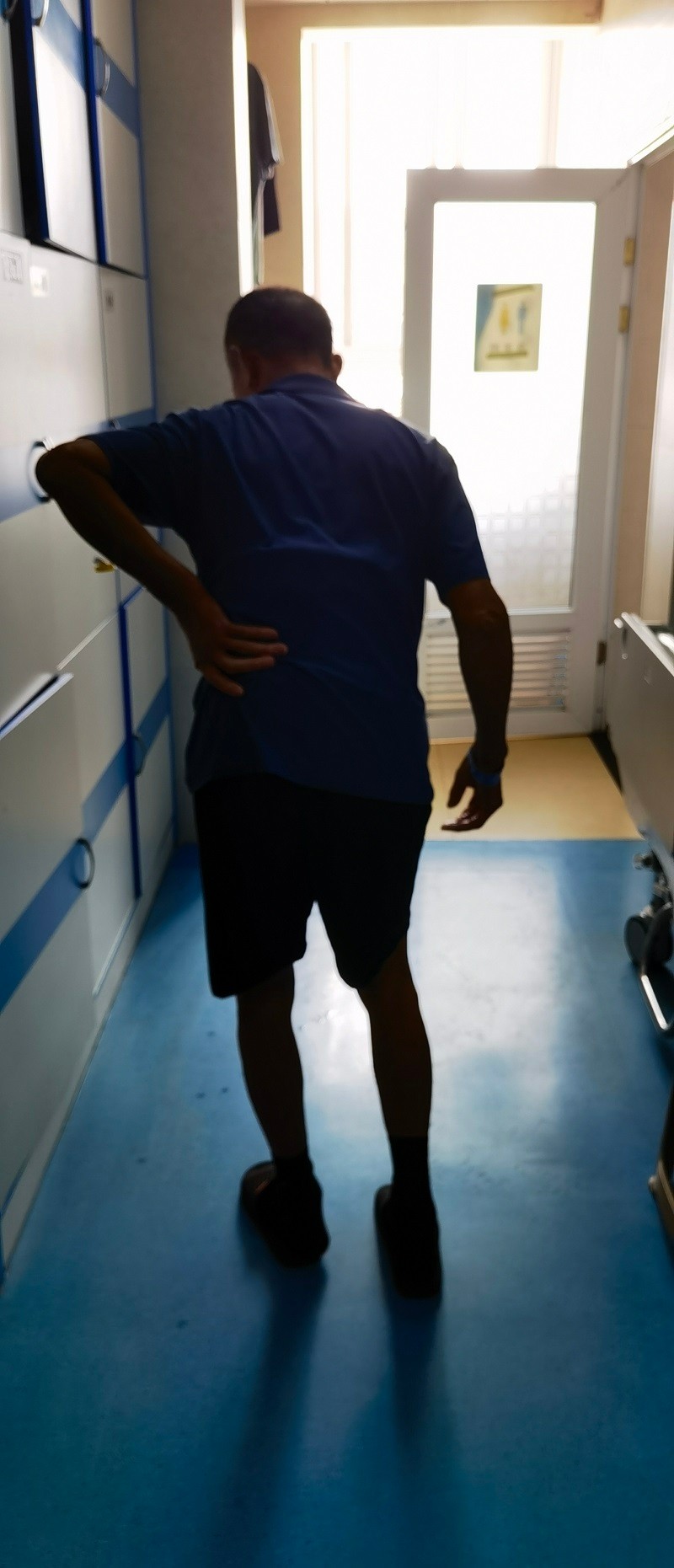 术后的患者腰部疼痛缓解,可以放心地直立行走。医院供图