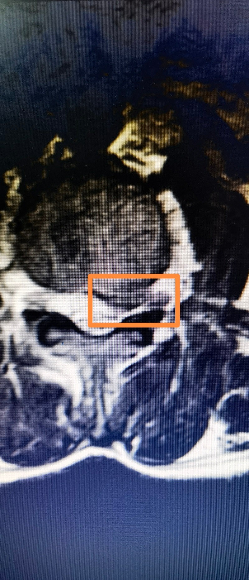 唐先生的术前MRI,腰3.4椎间盘左侧突出。医院供图