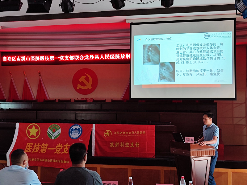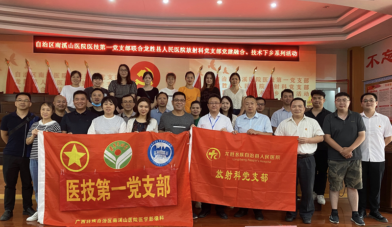 7月31日,广西壮族自治区南溪山医院医技第一党支部16名成员在支部书记罗雅丹的带领下赴龙胜县人民医院放射科开展党建与业务指导交流。