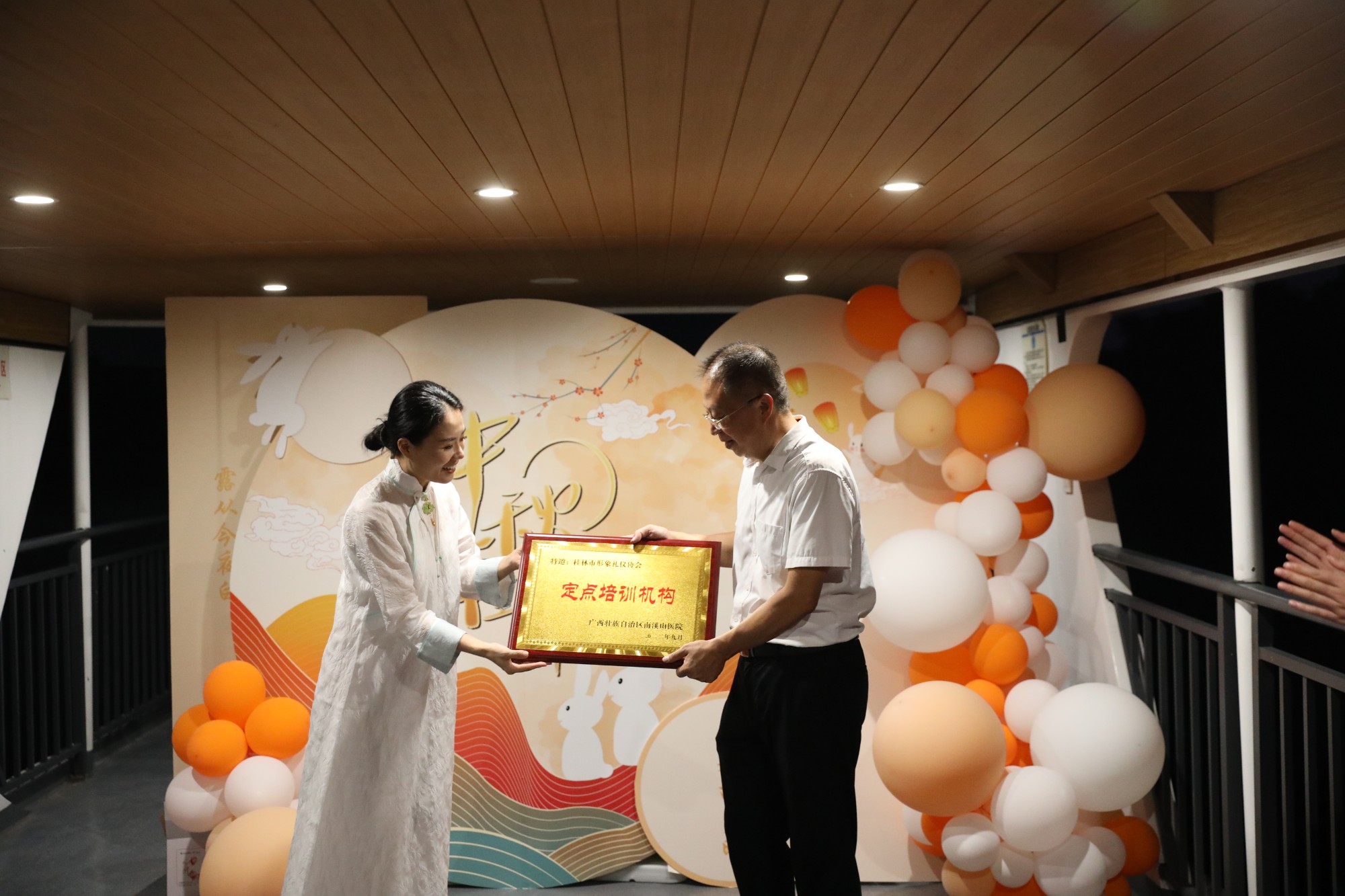 为塑造护理人员的良好形象,更好地服务病人。9月7日,应桂林市形象礼仪协会邀请,广西壮族自治区南溪山医院护理部组织了部分护士长和医院礼仪队队员代表,与桂林市形象礼仪协会的培训师们共同在漓江游船上举行友好合作授牌仪式和礼仪专项培训。当协会会长白银锋从医院领导手中接过“定点培训机构”牌匾之时,预示着双方的合作进入了一个新的阶段。