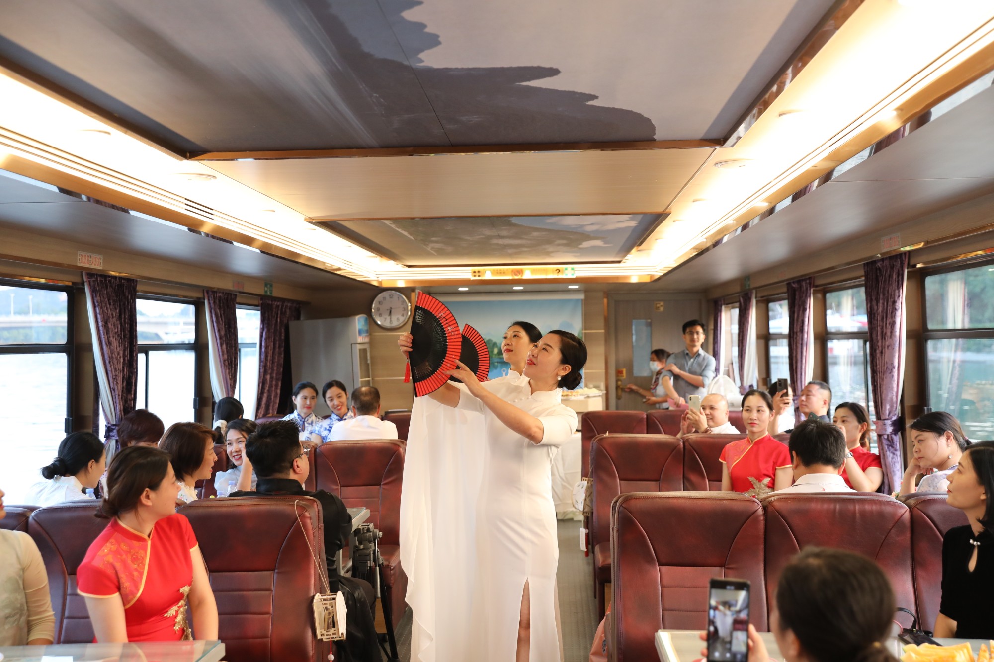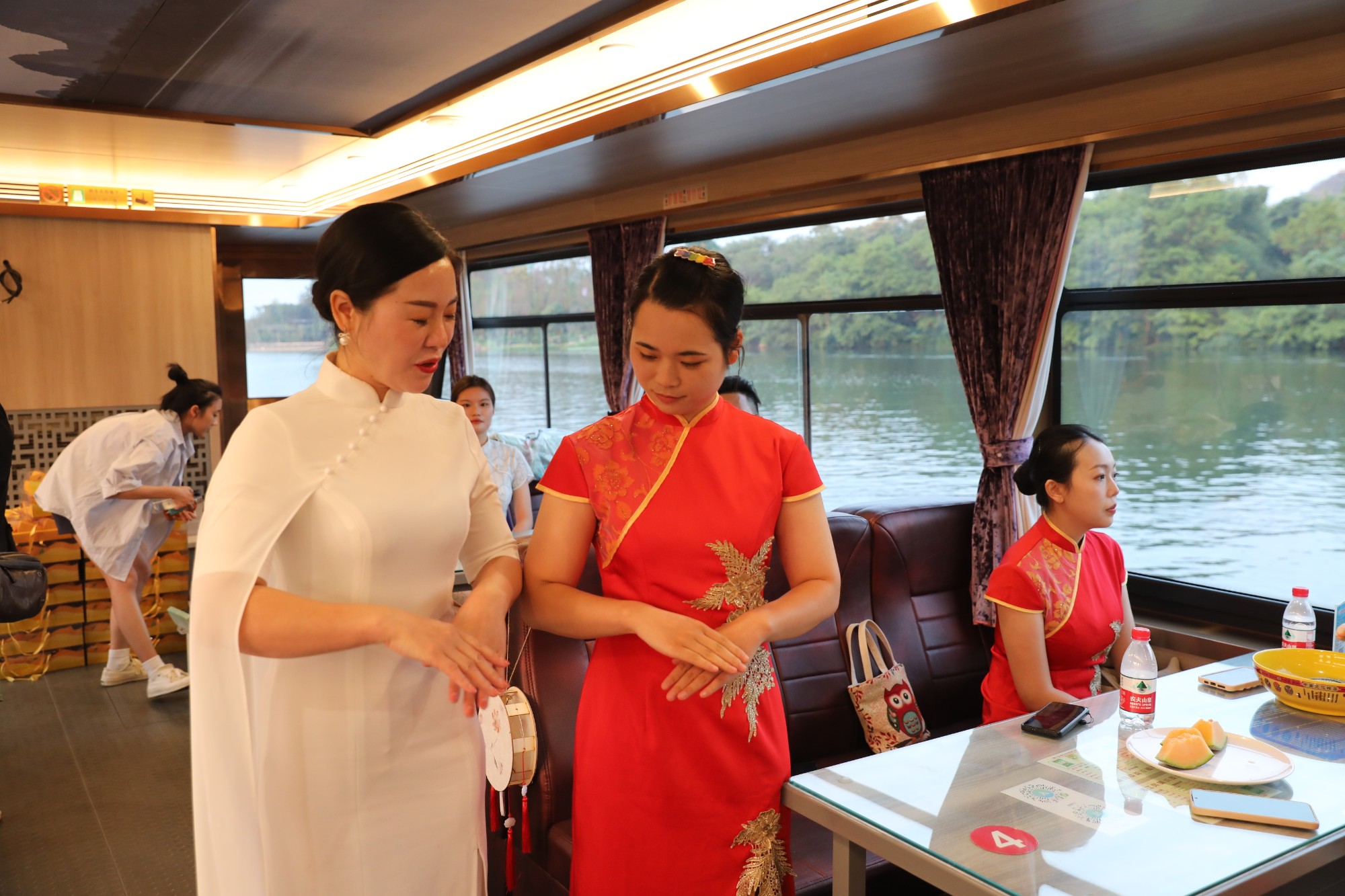 桂林市形象礼仪协会的老师们精心策划当天仪式和活动,他们结合中秋佳节的特点,倡议到场人员身着旗袍和中式服装。活动现场,协会礼仪老师现场指导南溪山医院护理人员基本的礼仪手位和注意事项,并通过旗袍秀等节目表演,让在场人员感受中华传统礼仪之美。大家还共同开展了中秋花灯制作和猜灯谜等互动游戏,丰富多彩的活动让南溪山医院辛勤工作在救死扶伤和抗疫一线的白衣天使在中秋佳节来临之际有了一次难得的放松、开心的时刻。