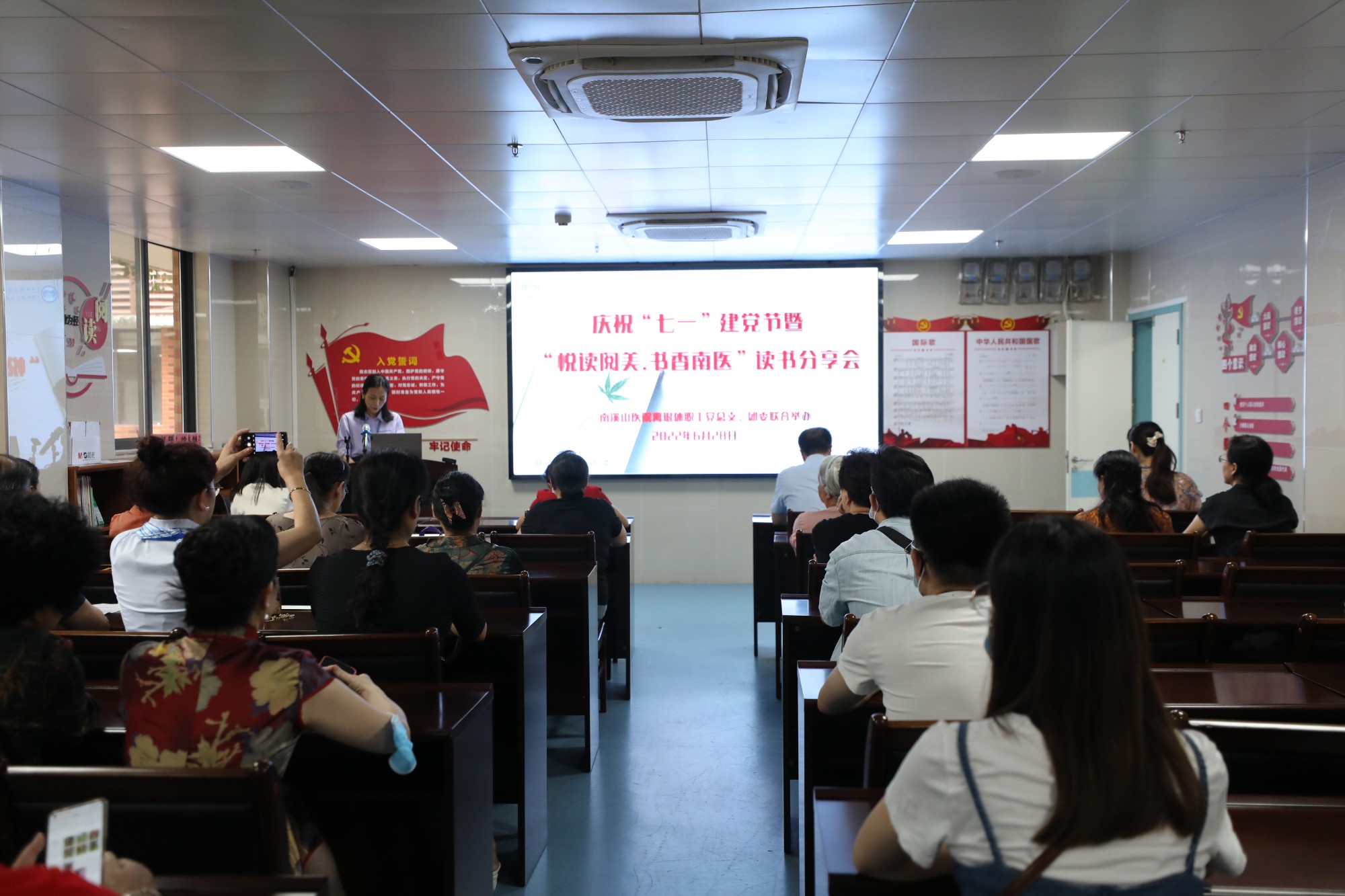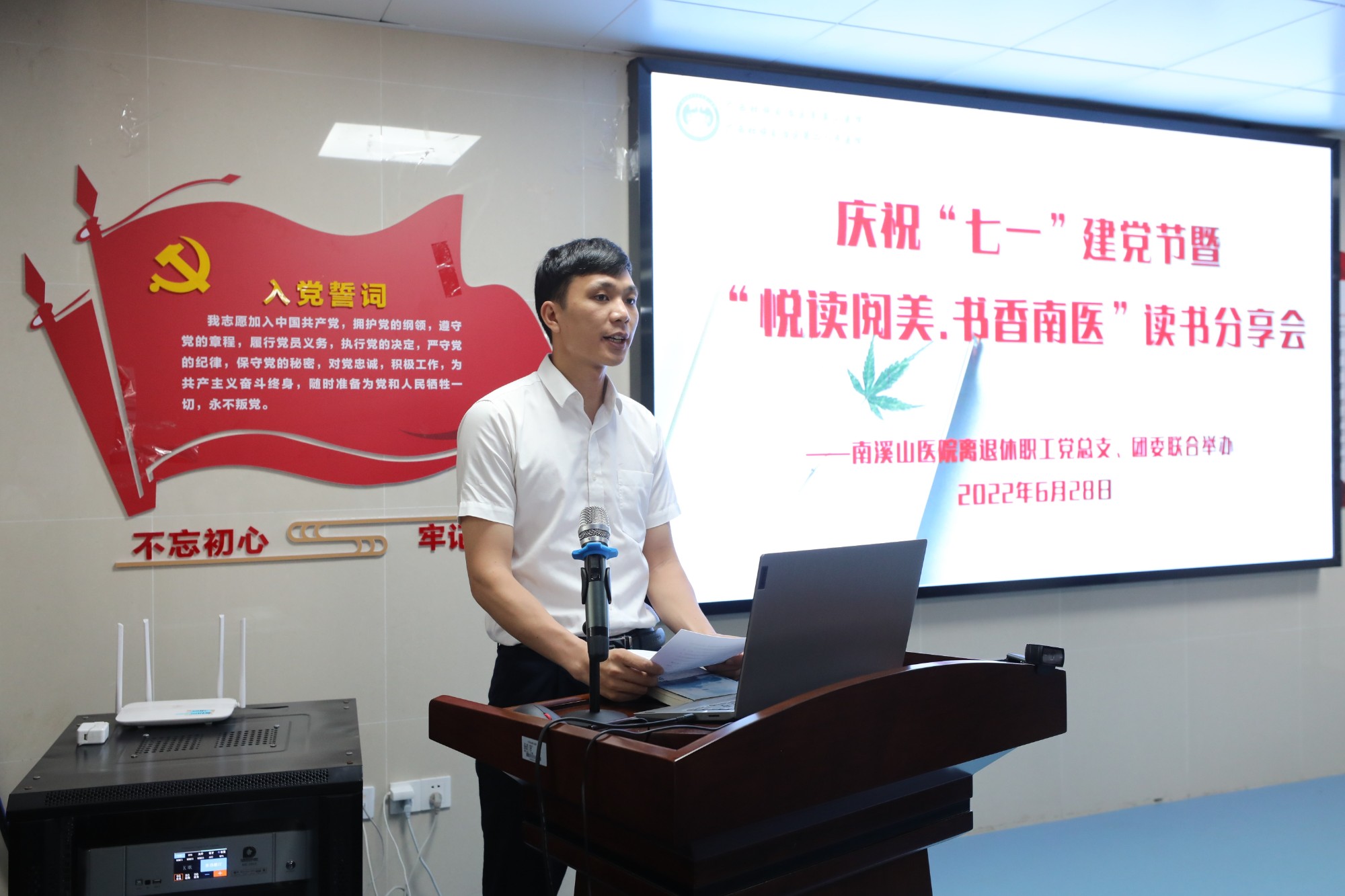 为给党员、团员搭建“读书、感悟、交流”平台,6月28日上午,在“七一”建党节即将到来之际,广西壮族自治区南溪山医院离退休职工党总支积极响应号召联合该院团委组织青年文明号集体的团员们共同举办“悦读阅美·书香南医”读书分享会,该院党委副书记、工会主席张超群出席活动,该院离退休职工管理科科长陶娟主持活动。