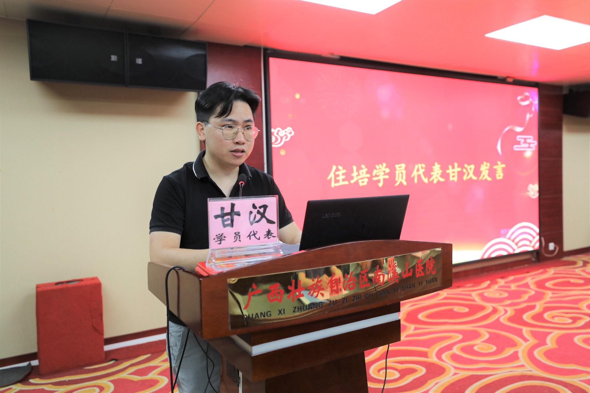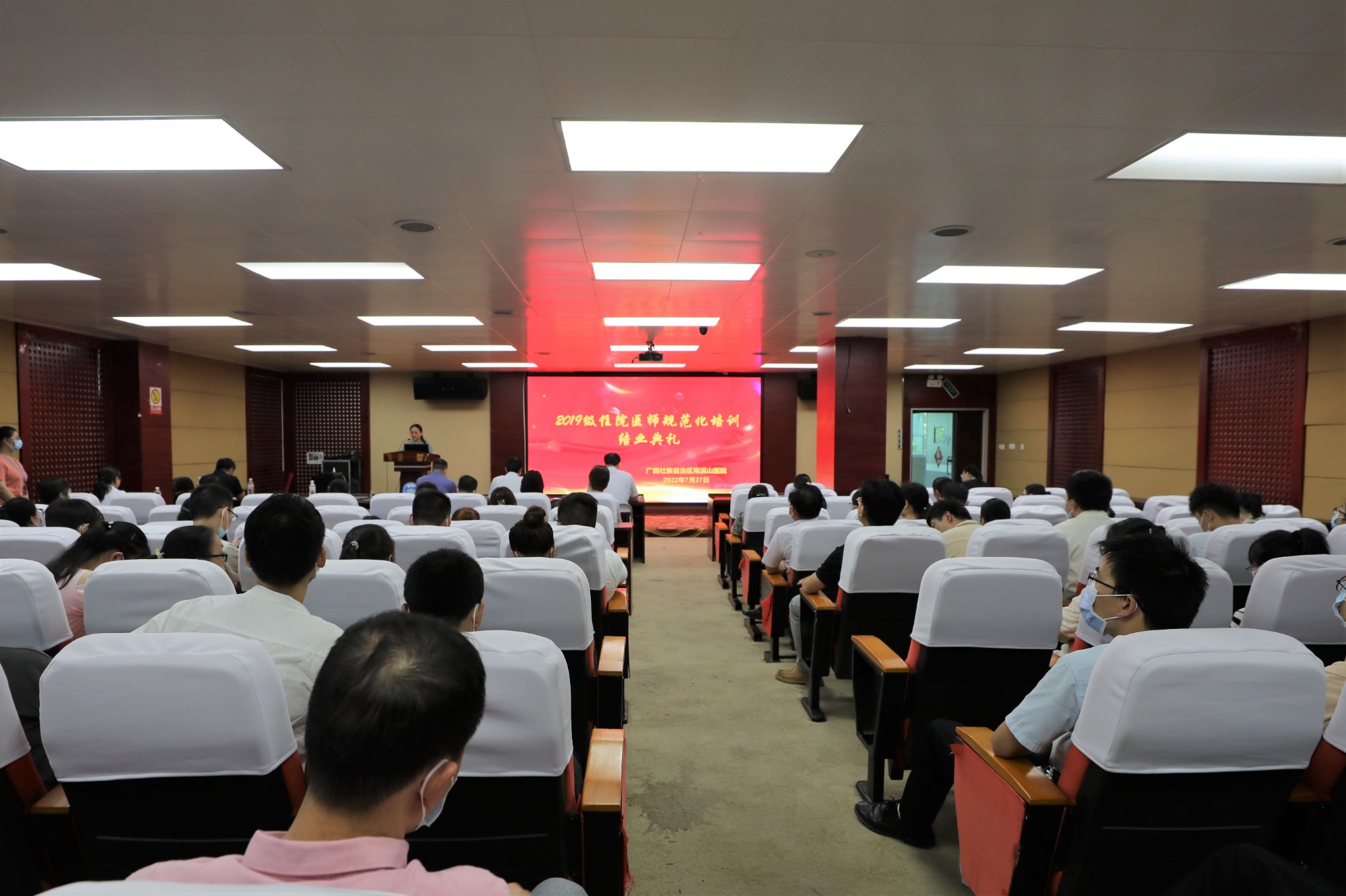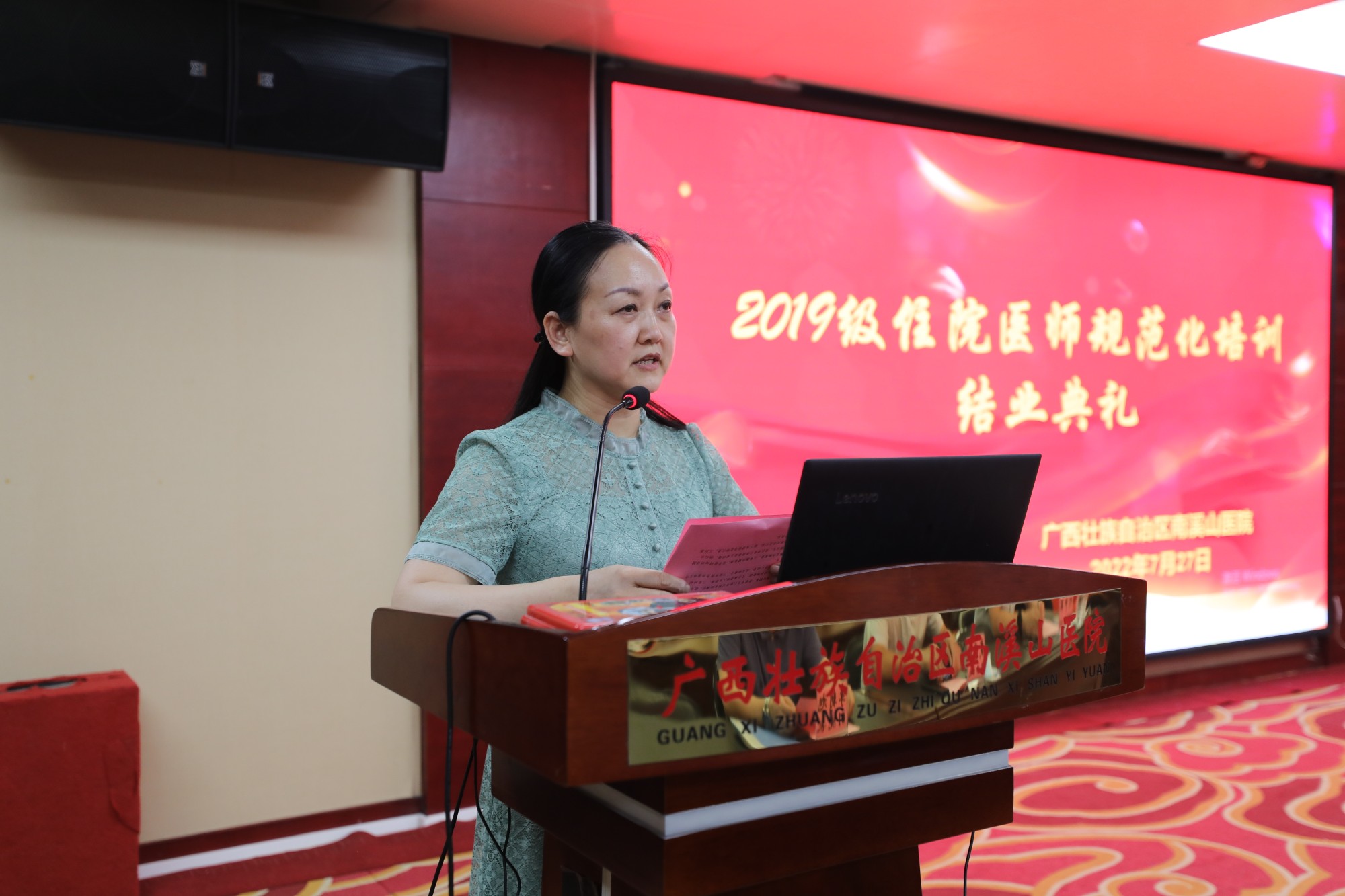 7月27日,广西壮族自治区南溪山医院2019级住院医师规范化培训结业典礼在该院学术报告厅举行,医院党委书记戴前富、党委副书记、院长刘宇军、副院长李朝旭出席仪式,17个专业基地管理人员、指导老师代表、2019级全体住培学员、2020级住培学员代表参加典礼,该院教学管理科科长熊爱民主持典礼。