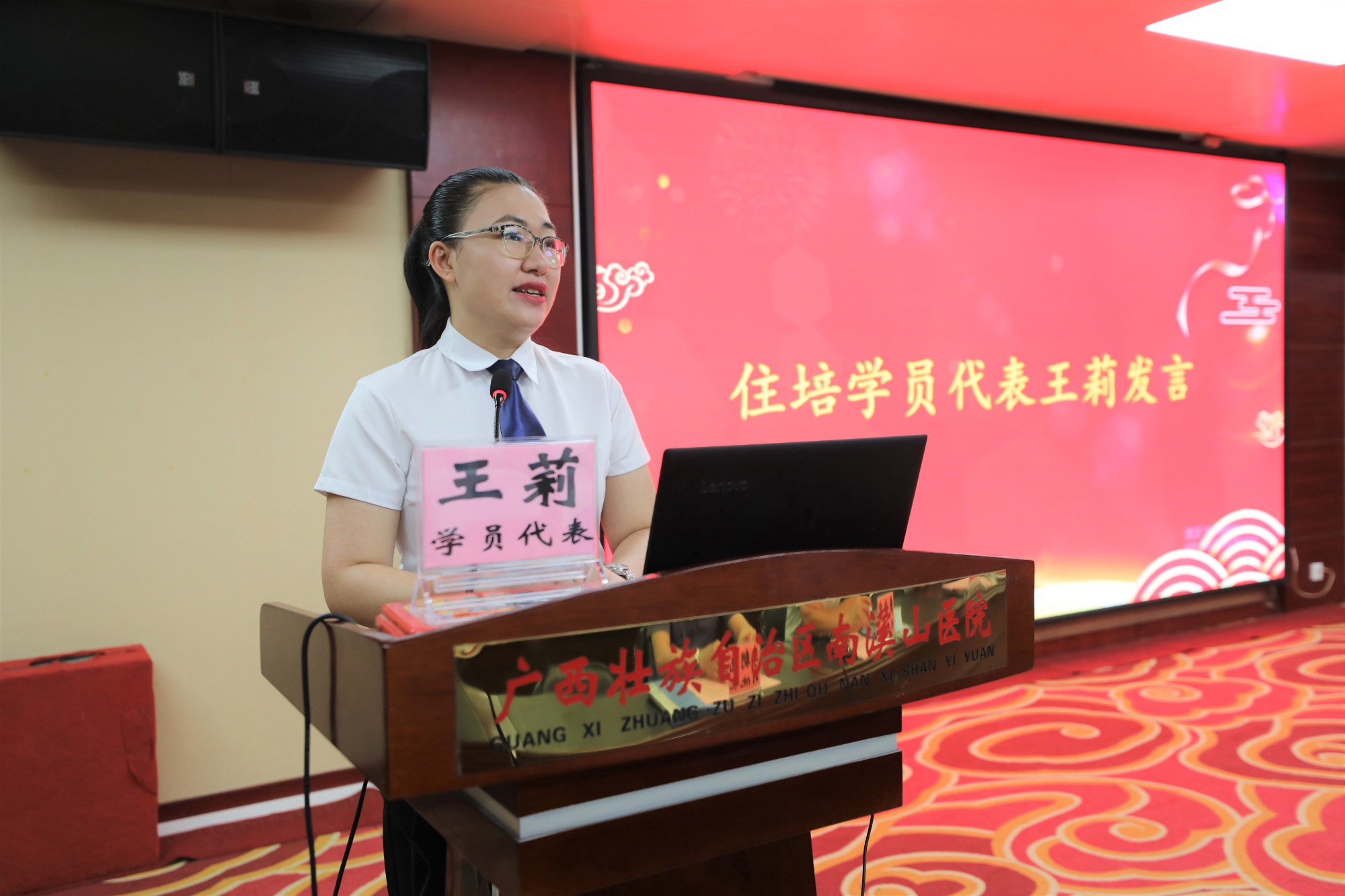 此次住培基地主任代表陈锋、指导老师赵红丽分别为住培医师们送上深情寄语,激励学员们勇于面对挑战和机遇,希望学员们在未来的工作中要不泯医者初心。2019级学员代表从各不同角度汇报了在培训班中的学习成长历程,回味了三年的学习经历和心得,道出了住培医师成长过程中的付出和收获,努力践行社会主义核心价值观,做人民满意的医务工作者。