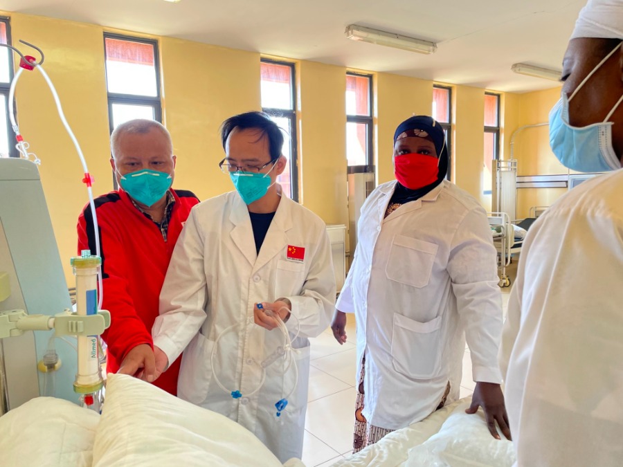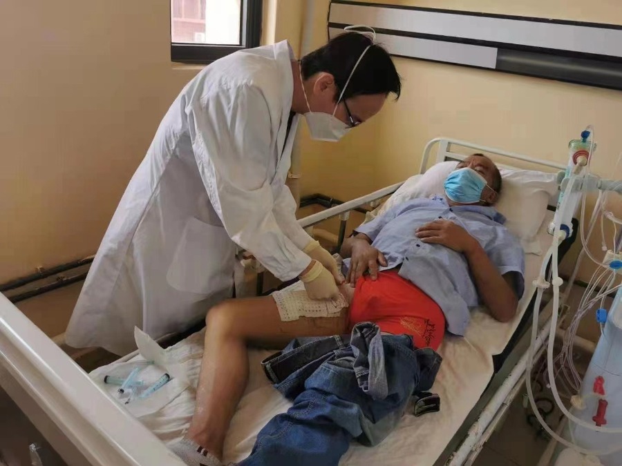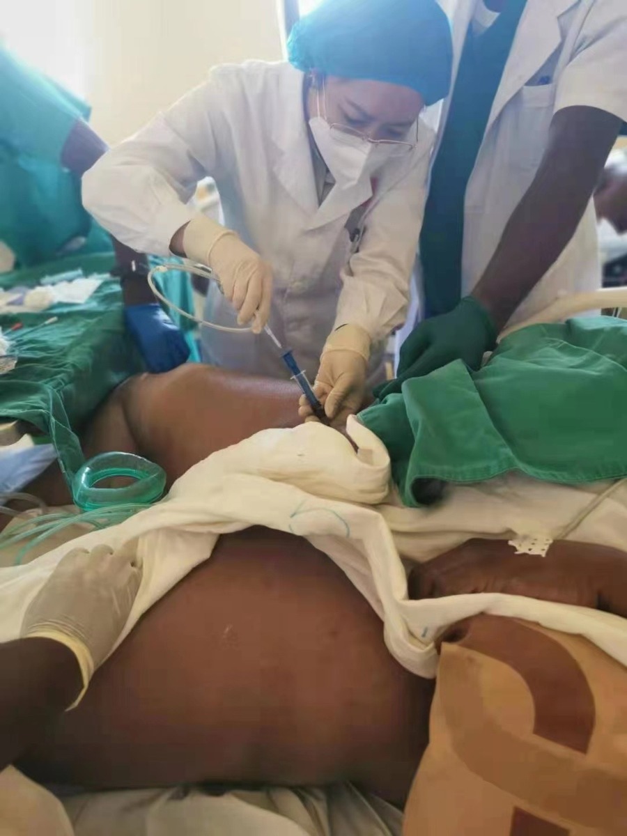 7.中国(广西)第22批援尼日尔医疗队队员罗丽群副主任医师为当地肾功能衰竭患者插管透析治疗.jpg