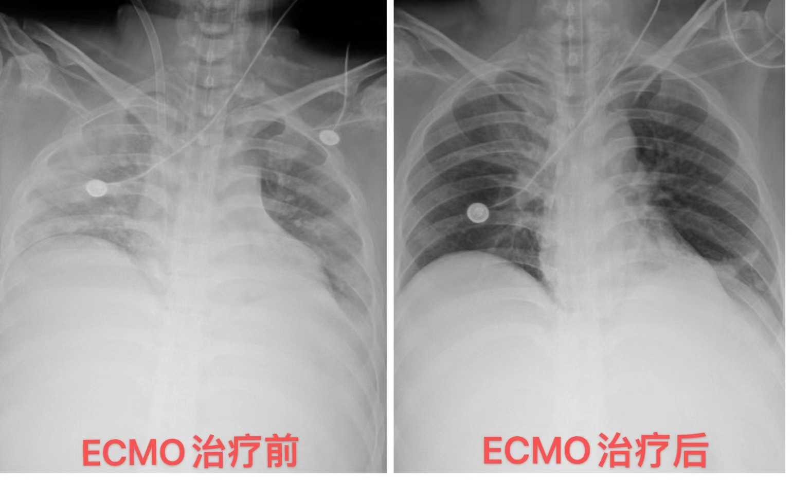 专家们会诊后为熊女士制订了个体化的诊治方案,进行了血液净化、B超引导下腹腔穿刺、中医联合等积极治疗。但她的病情仍在持续恶化,血氧下降,只能使用呼吸机辅助呼吸,但肺部病情进展迅速,顽固低氧血症使用呼吸机也无法纠正,氧合指数一度下降至50mmHg,只能请出“救命神器”,进行VV-ECMO治疗。虽然医护人员日夜奋战,但熊女士病情恢复缓慢。因为病情重,病程长,治疗费用高,治疗难度大,每天都有各种病情告知签字谈话,熊女士家属的心情十分煎熬,由一开始的期待转为烦躁甚至愤怒。综合重症医学科的医护人员只能细心照护熊女士的同时,耐心与家属进行病情沟通。经过ECMO团队连续十个日夜地努力,熊女士病情逐渐好转,顺利撤离ECMO之后,三天内撤离呼吸机,之后成功转出ICU。