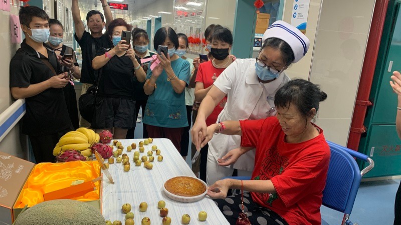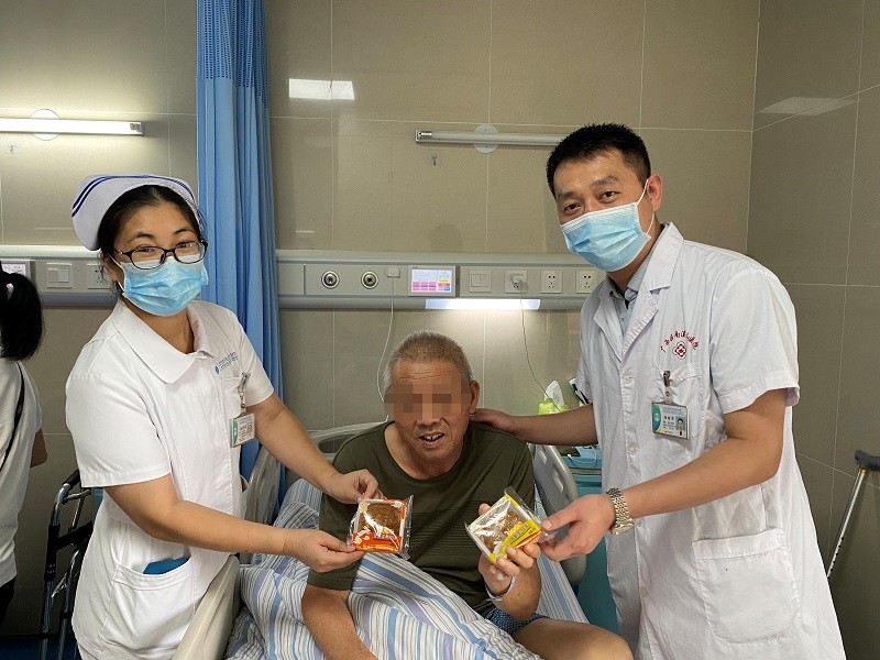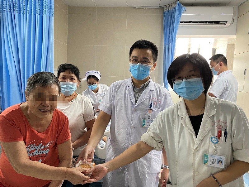 中医科医生向住院患者赠送月饼