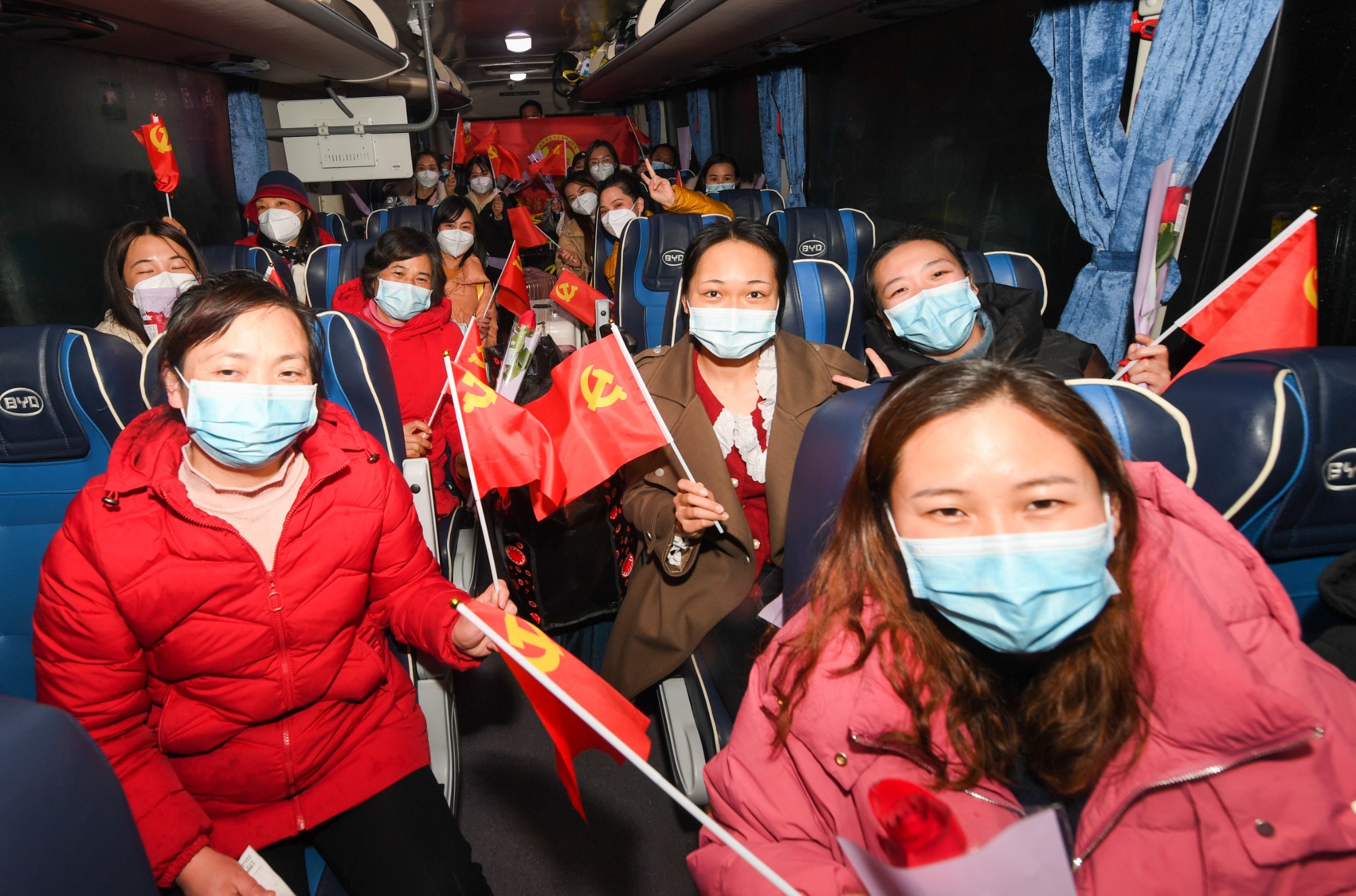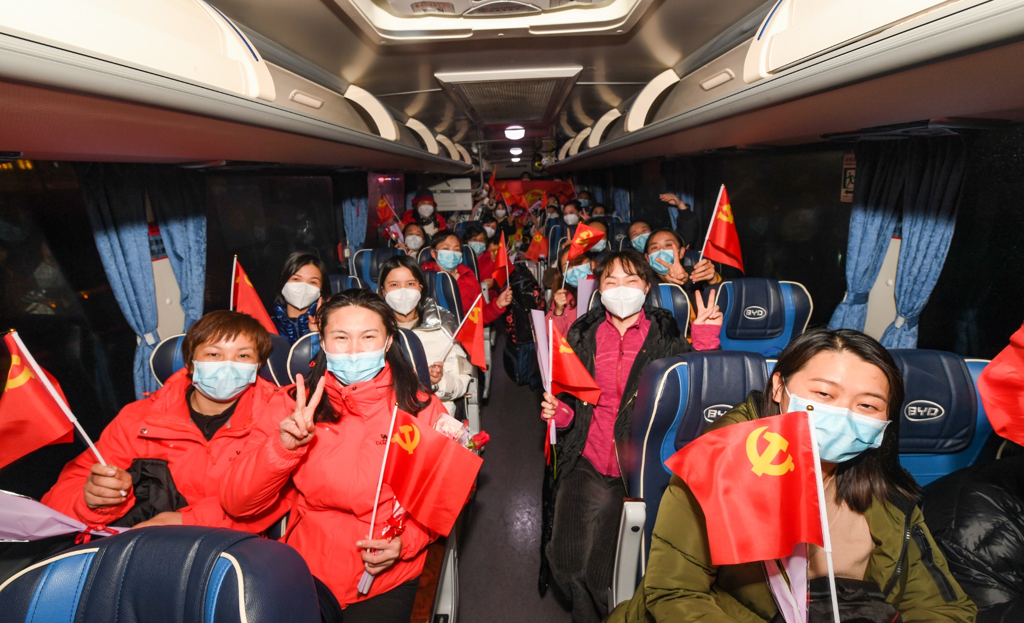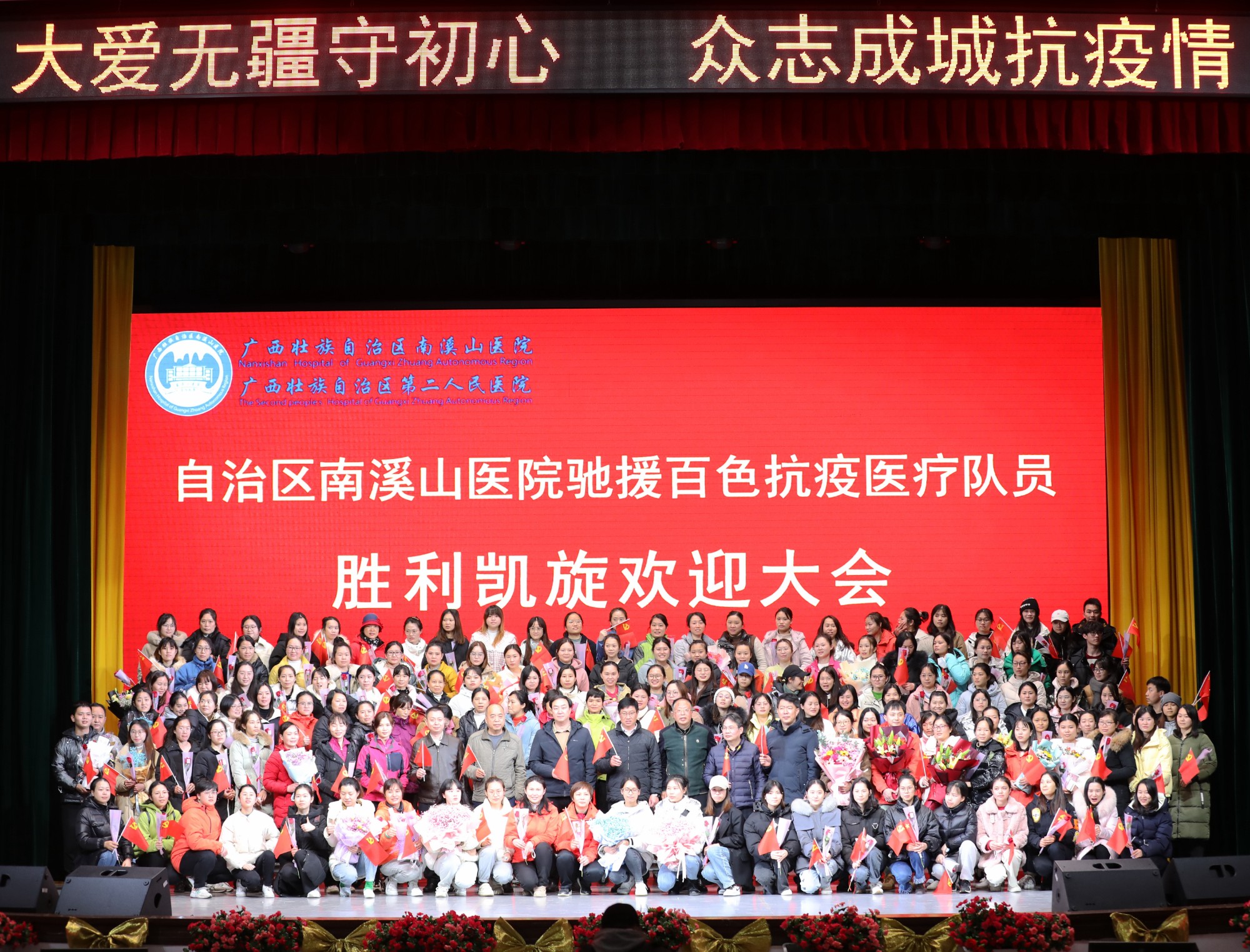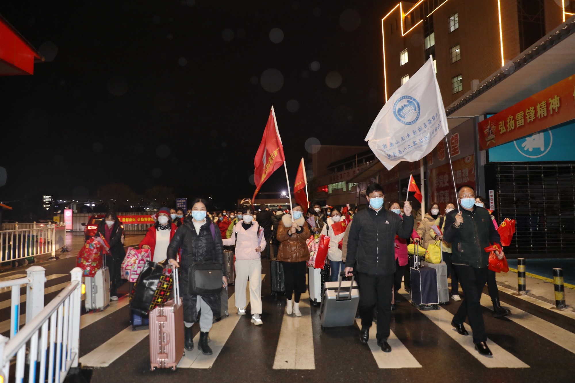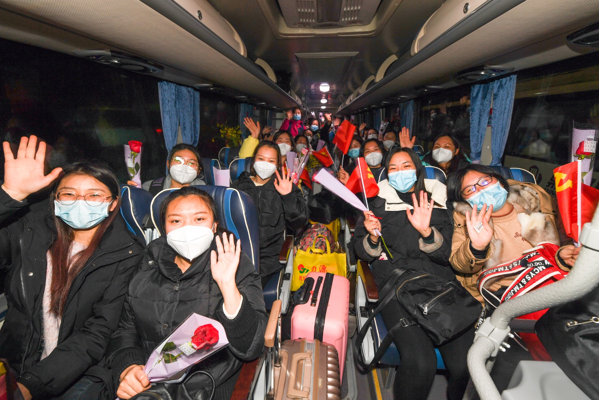 2月16日晚,广西壮族自治区南溪山医院143名驰援百色核酸采样检测医疗队队员圆满完成任务,平安抵达桂林。