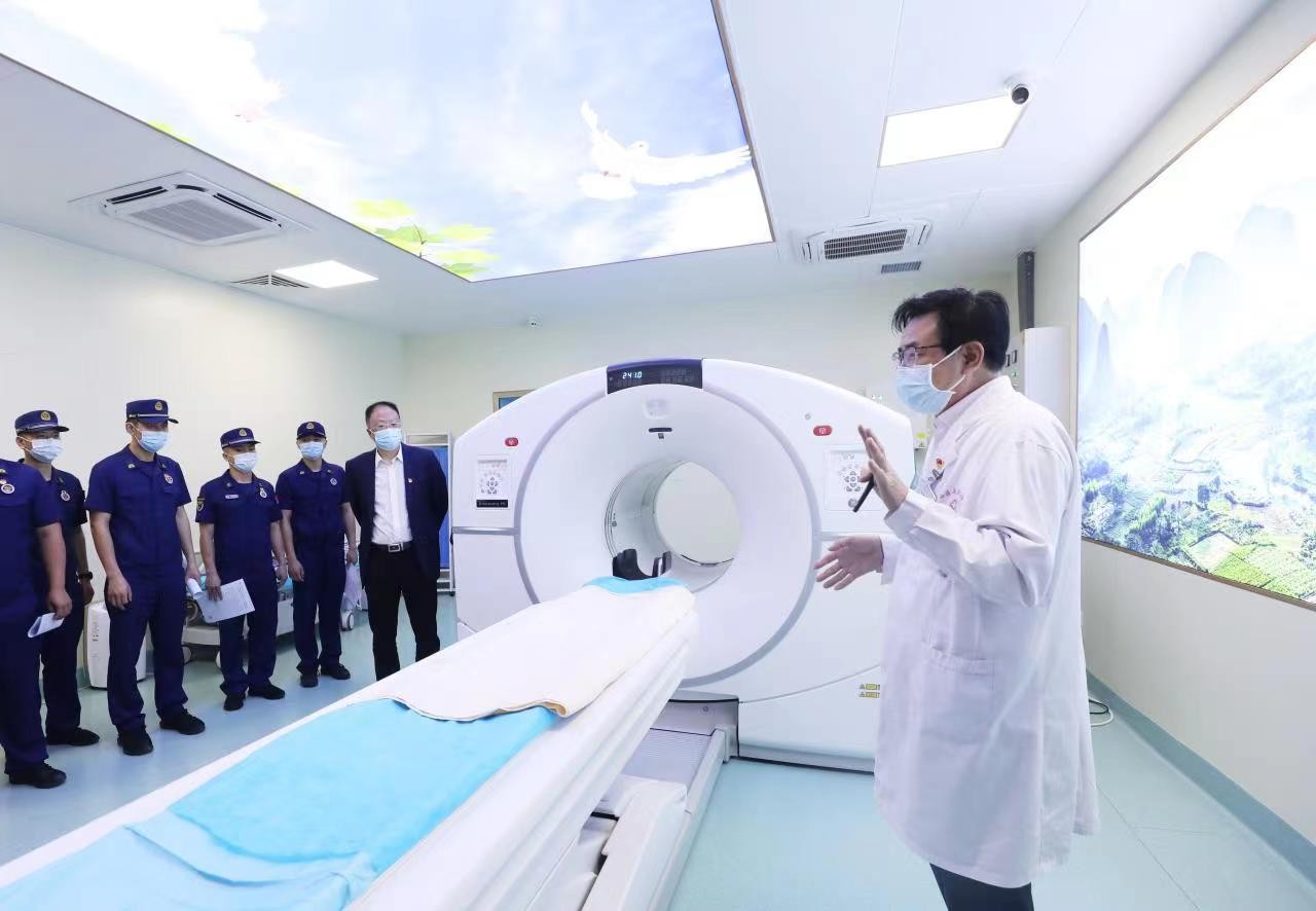 当天下午4时,桂林市消防救援支队团员青年一行54人来到南溪山医院。在医院有关领导和党办、团委、保卫科、宣传科等部门负责人的引领下,年轻的消防救援队员沿医院文化长廊、中越友谊桂花大道一路向前来到医院院史展览馆和大礼堂等处,参观医院光荣援越历史和文化品牌、党建、抗疫、廉政医院建设等方面的成果,医院优美的环境、精湛的技术、周到的服务、先进的医疗设备,浓厚的文化氛围,让消防官兵赞叹不已。