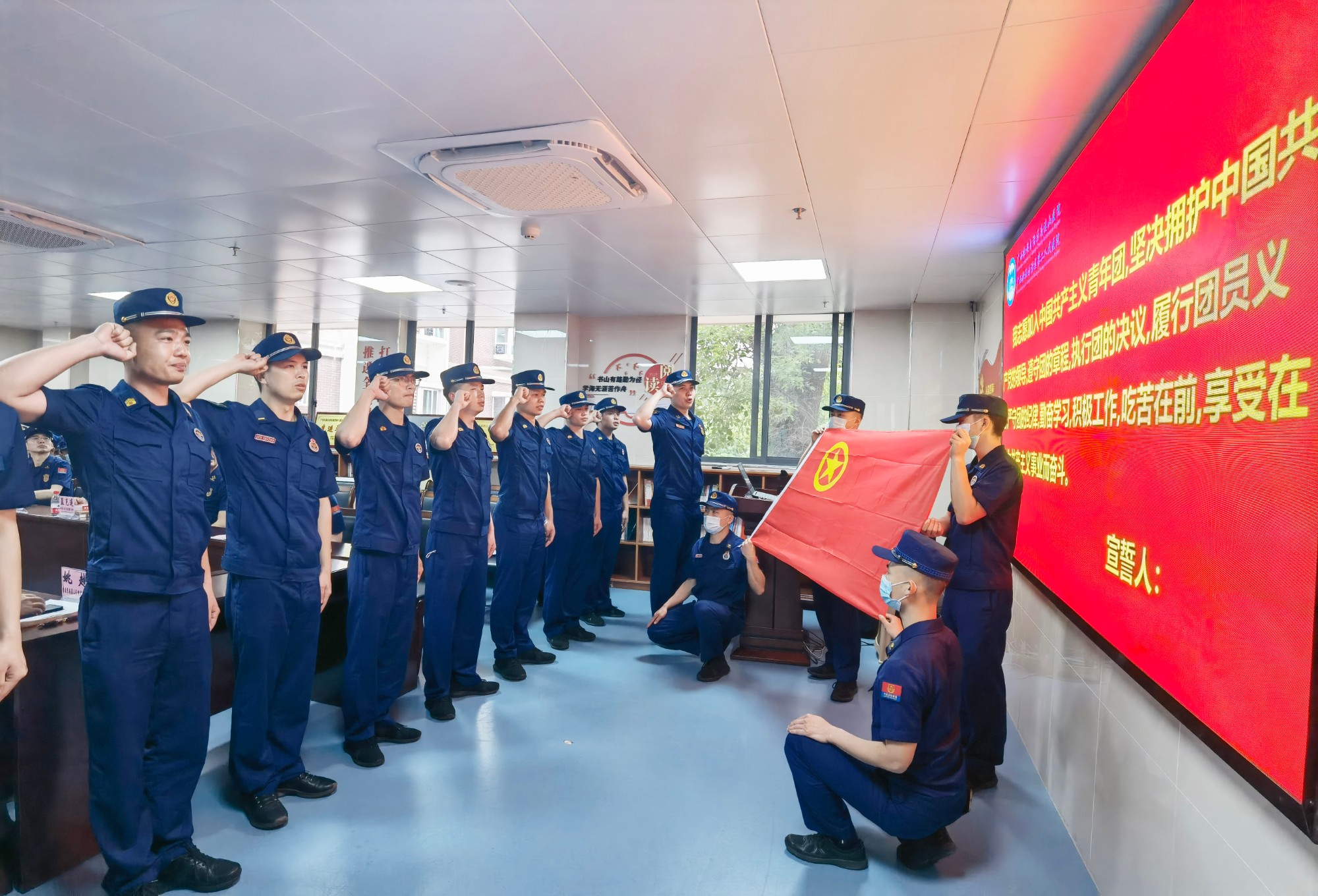 在第100个“5·4”青年节到来之际消防救援支队的7名新鲜血液宣誓入团