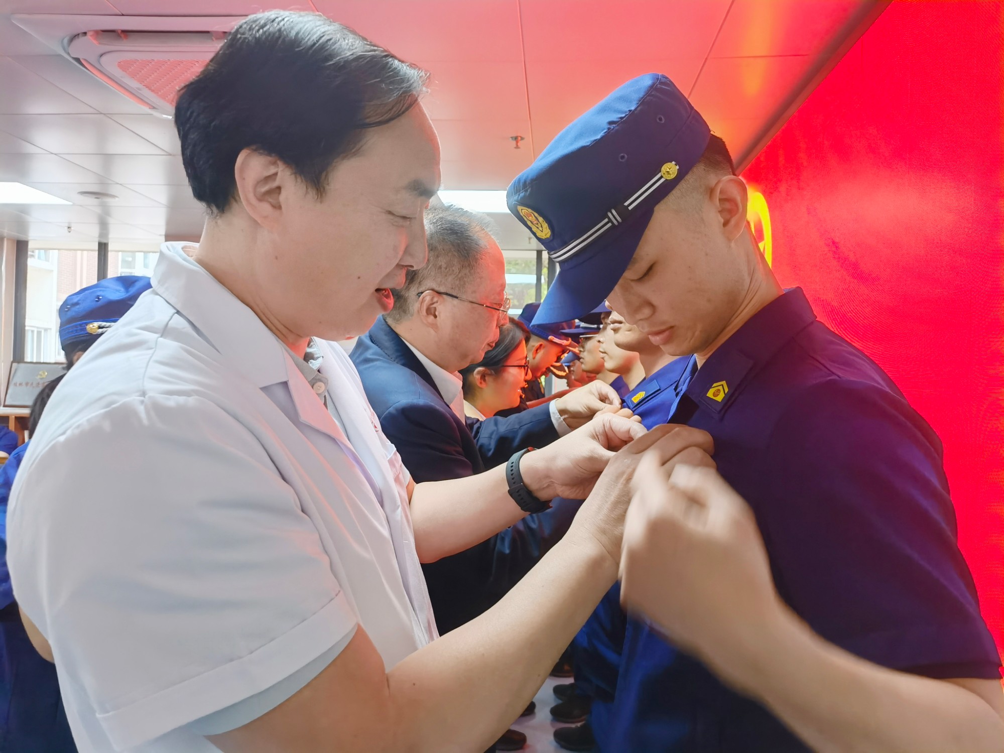 党建带团建,高举团旗跟党走。7名新加入团组织的桂林市消防救援支队的青年在瓦窑站副站长唐雨翔的带领下进行入团宣誓。南溪山医院领导为桂林市消防救援支队新进团员佩戴团徽,把两个单位联合开展的五四团日主题活动被推向了高潮。