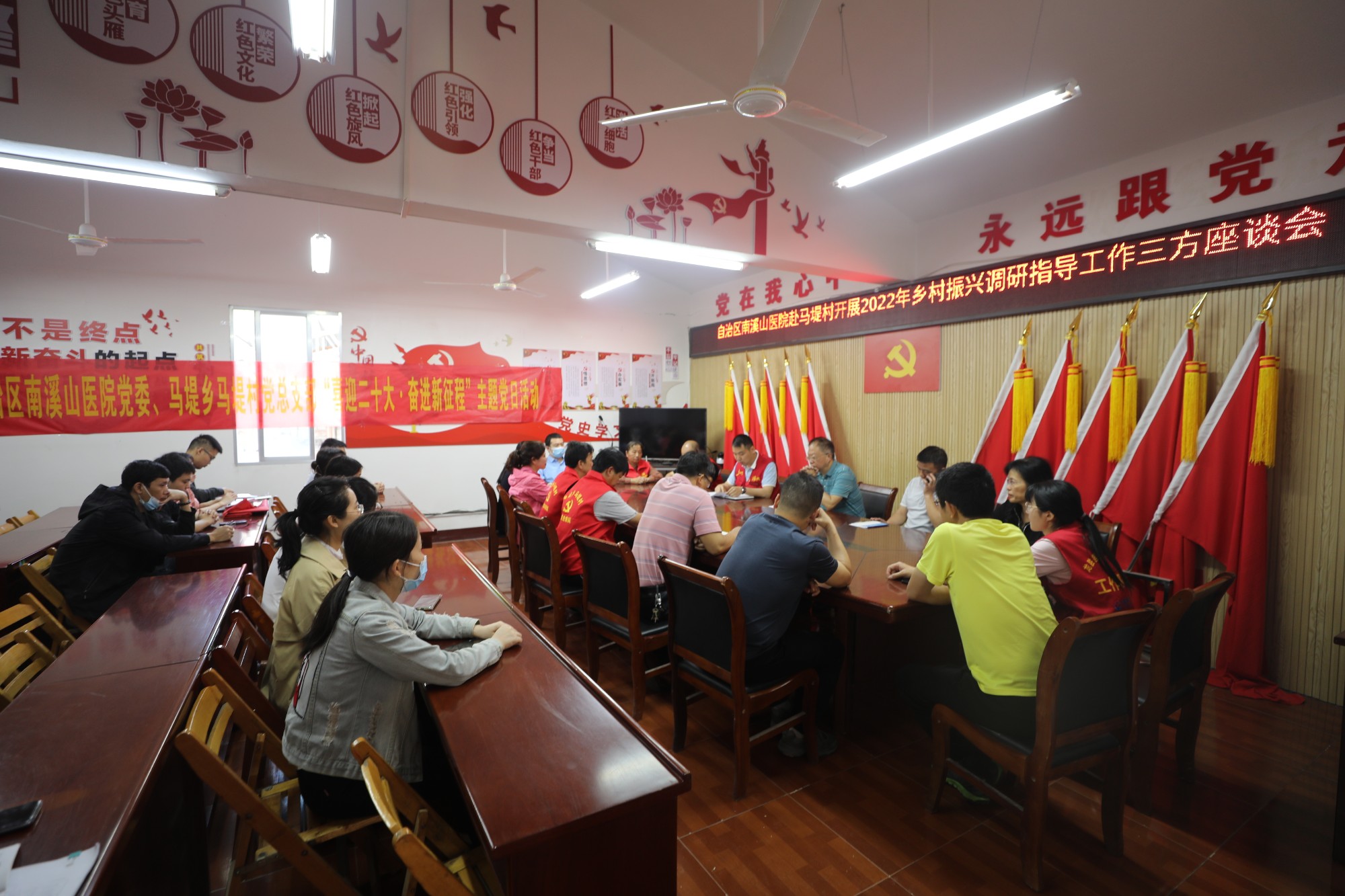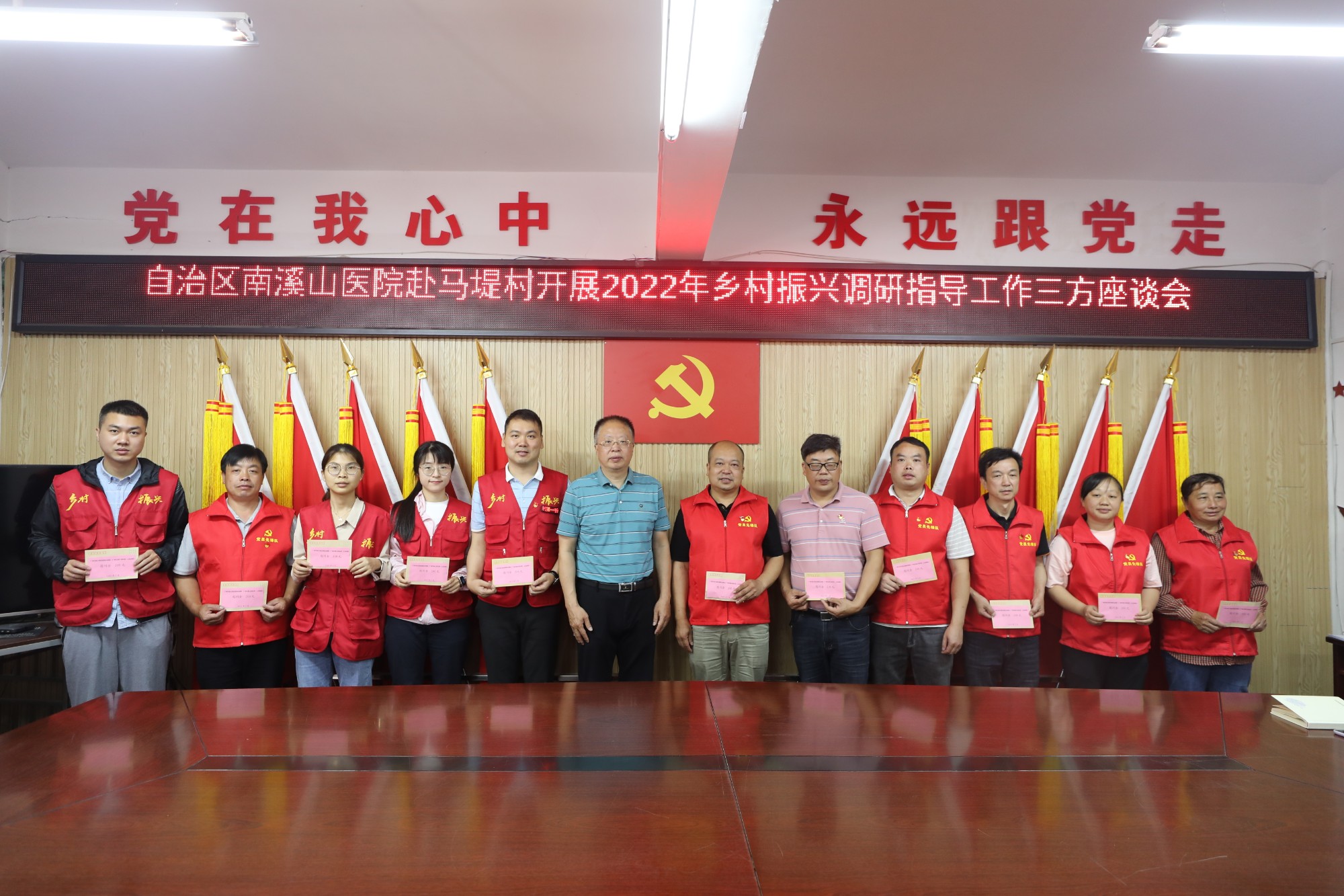 在党委副书记张超群的带领下,南溪山医院各党支部一行19人来到乐江镇凉坪村和马堤乡马堤村与南溪山医院驻村书记、驻村工作队和村“两委”班子进行座谈交流。驻村第一书记和工作队队员围绕巩固拓展脱贫攻坚成果同乡村振兴有效衔接、党建工作、产业发展、特色亮点、经验做法等方面进行了总结汇报。活动中,张超群向凉坪村与马堤村的驻村工作队员发放慰问金,向他们表示慰问的同时,充分肯定了驻村干部们对乡村振兴工作的积极贡献。
