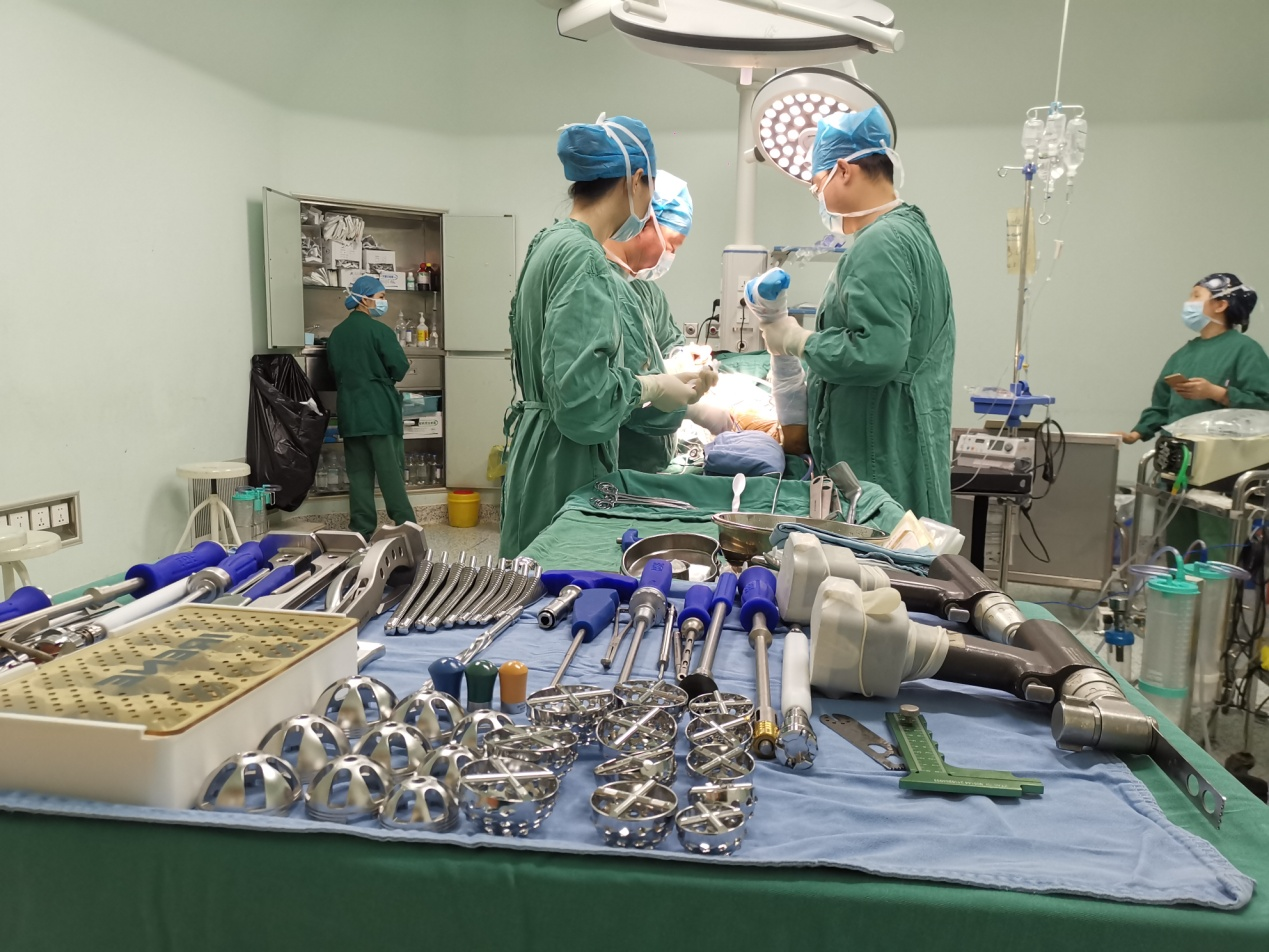 器械护士配合关节与运动医学外科医生进行人工全髋关节置换术