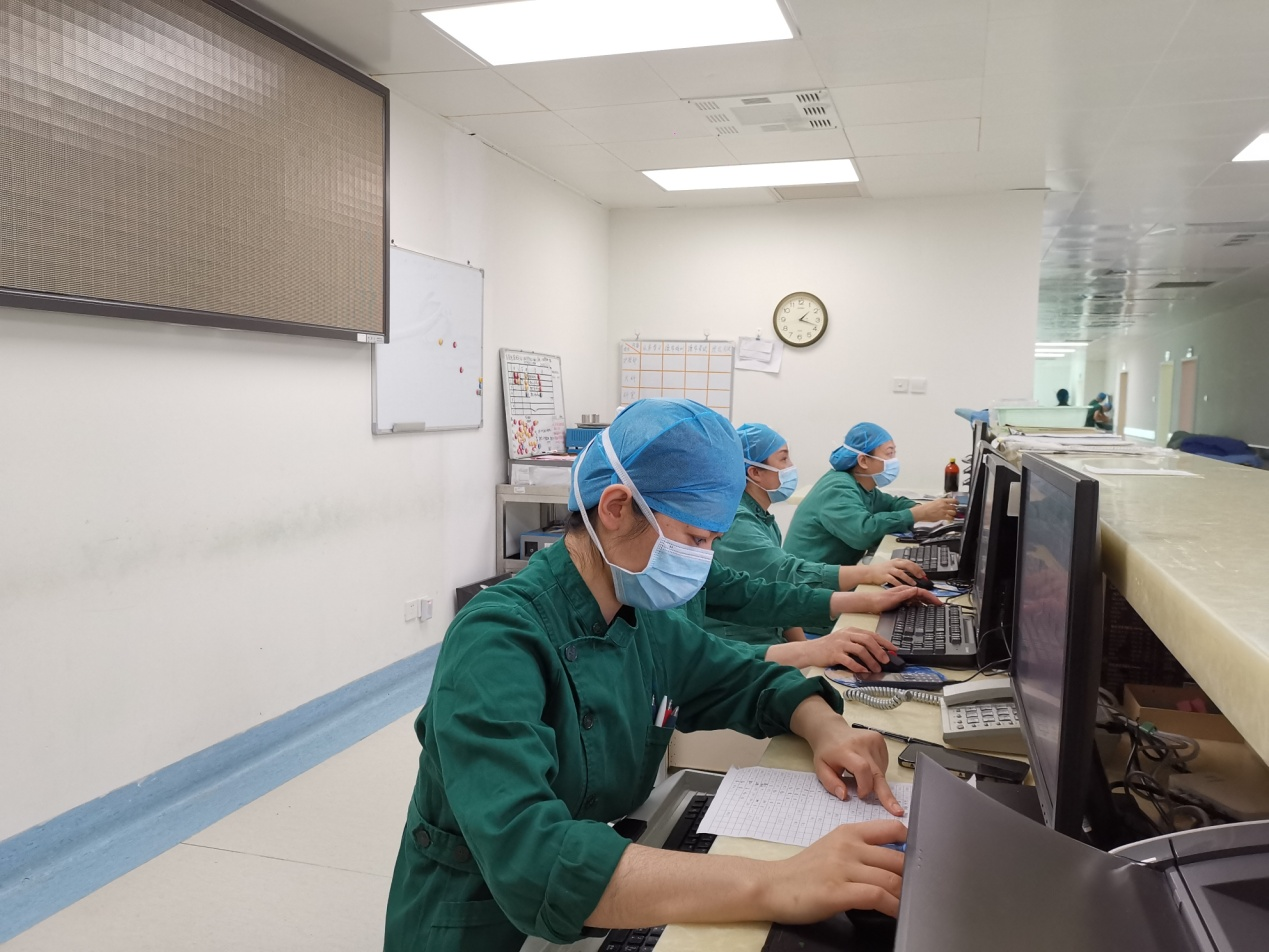 他们穿着一身身的绿色工作服,“隐身”在手术室中,脱下这一身绿色职业外衣,他们中也许有我们的朋友、家人。但只要穿上这一身绿衣,团结、协作、奉献、专业、慎独的职业精神就在她们身上闪耀。手术室护士长胡悦说:“今天虽然是护士节并且在疫情期间,我们13个手术间共要完成近60台的择期手术,在选派四名手术室护士外出支援抗疫的情况下,人员还是有些紧张的,但我们一样踏踏实实的配合手术团队做好每一台手术,不能辜负患者对我们的信任。