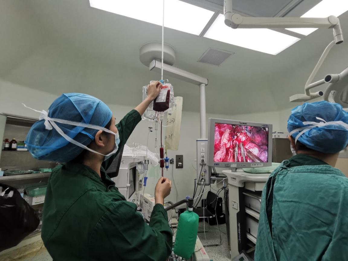 巡回护士为腔镜下手术患者输注血液