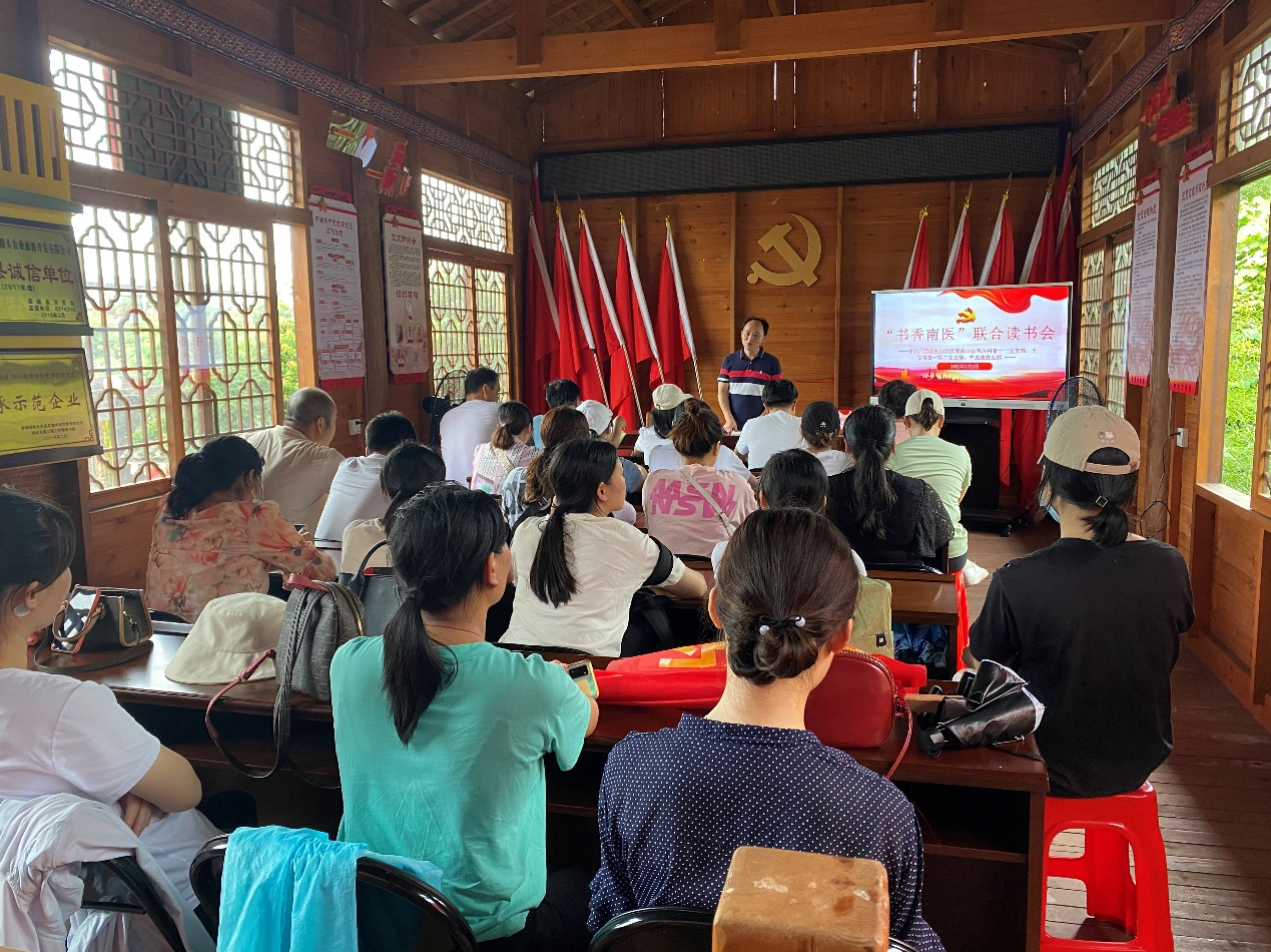 义诊结束后,参加活动的医务人员到当地牛路头农庄参观新农村建设,亲身感受党和国家乡村振兴战略为农村带来的美丽变化。20多名党员及10余名积极分子还在党建室开展联合读书会活动。内科第十一党支部盘玉飞书记回顾了中国共产党带领人民不懈奋斗的光辉历程和伟大成就,深刻领会了伟大建党精神的深刻内涵和时代价值;五官科党支部赵海云书记在读书会上分享了读书心得,学习了习近平总书记在湖北武汉考察时强调把科技的命脉牢牢掌握在自己手中,不断提升我国发展独立性、自主性、安全性的重要讲话精神,告诫大家要奋发图强,珍惜来之不易的和平岁月,读书活动是参加人员的思想得到了升华。