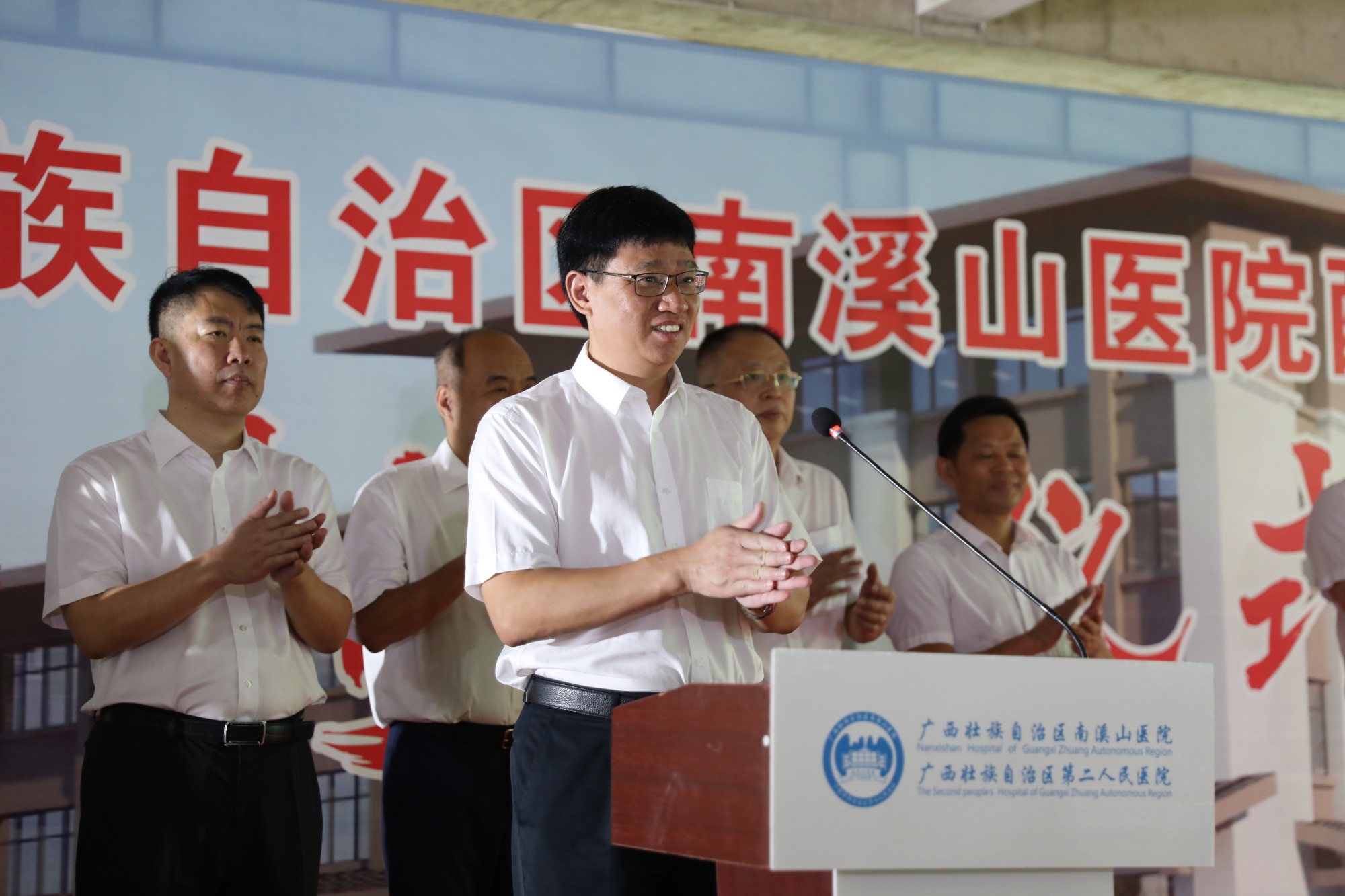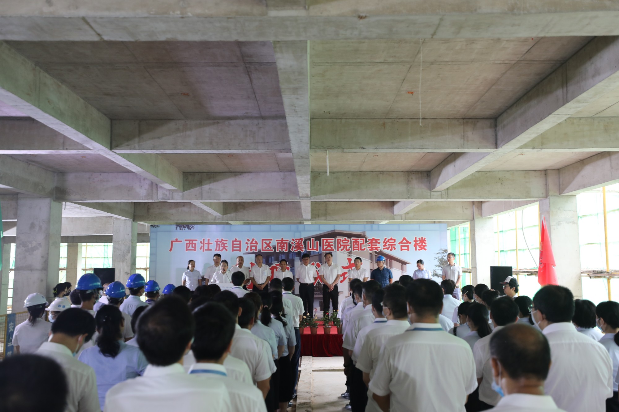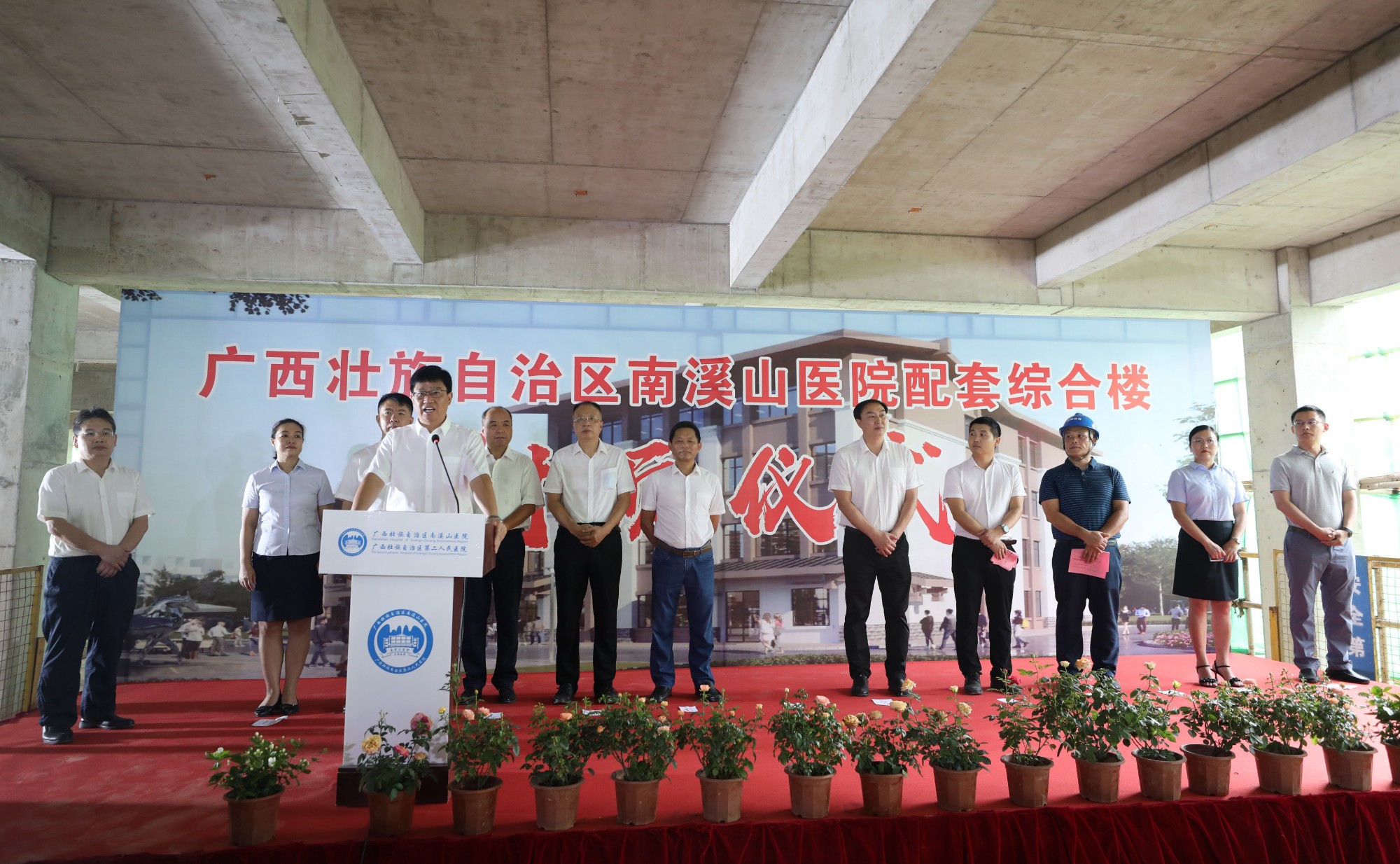 8月26日,广西壮族自治区南溪山医院举行配套综合楼封顶仪式,该院党政班子领导成员、医院中层干部,综合楼项目设计、施工单位相关负责人出席仪式。