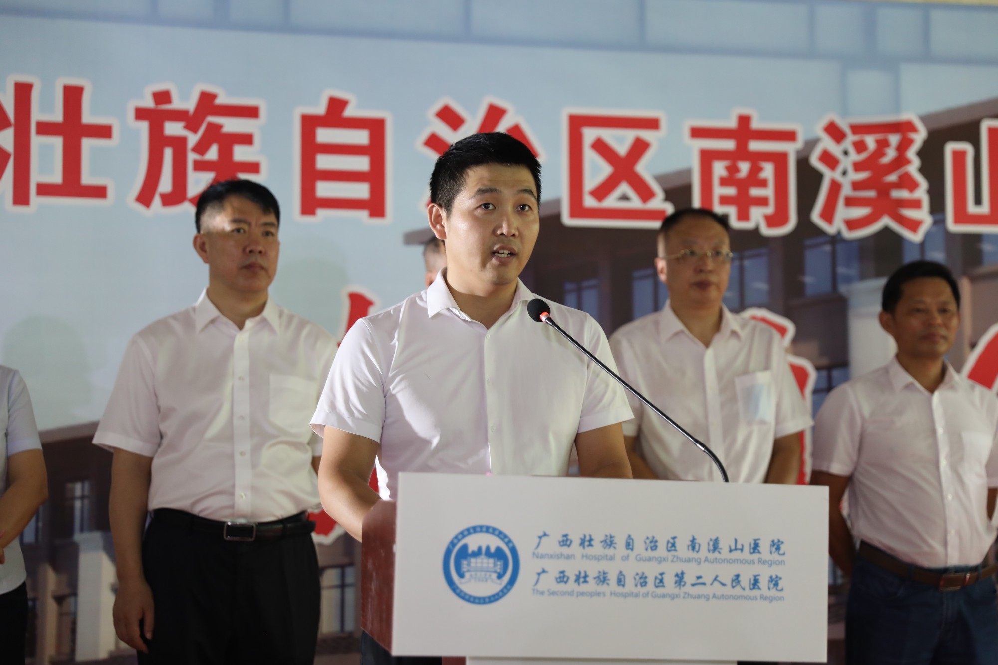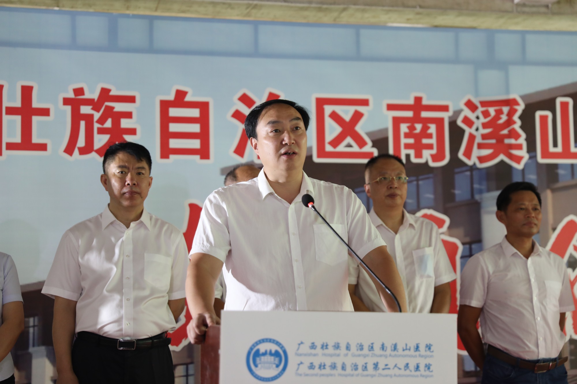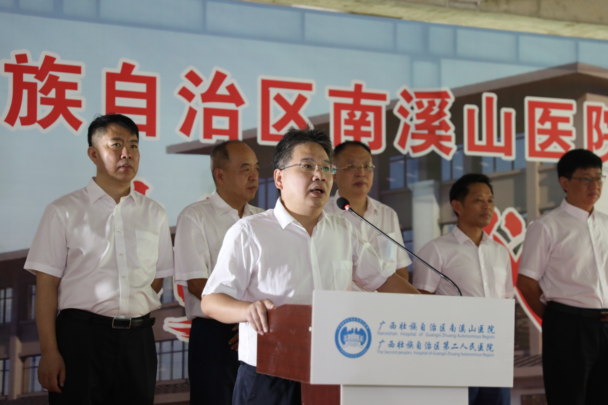 8月26日,广西壮族自治区南溪山医院举行配套综合楼封顶仪式,该院党政班子领导成员、医院中层干部,综合楼项目设计、施工单位相关负责人出席仪式。