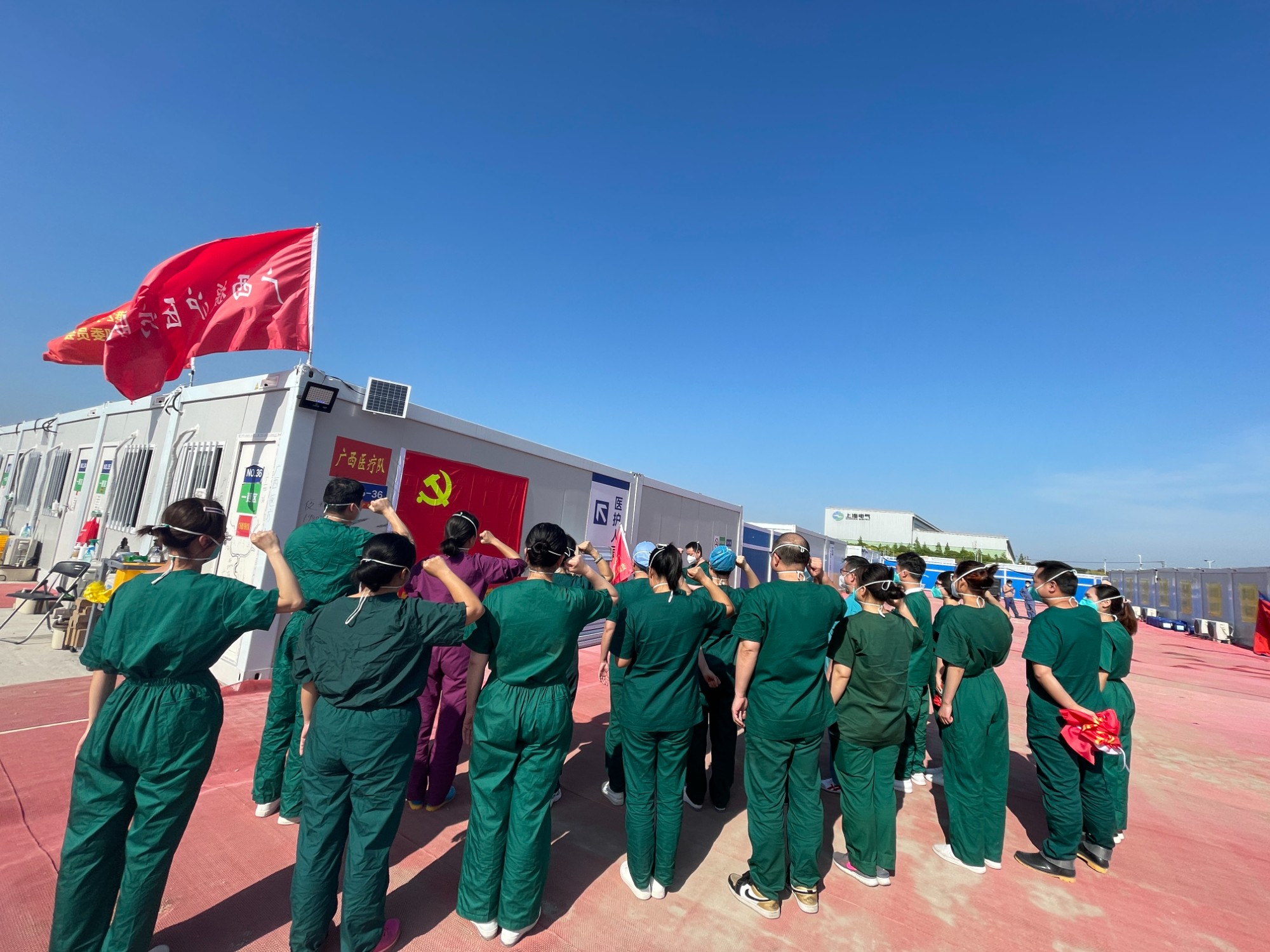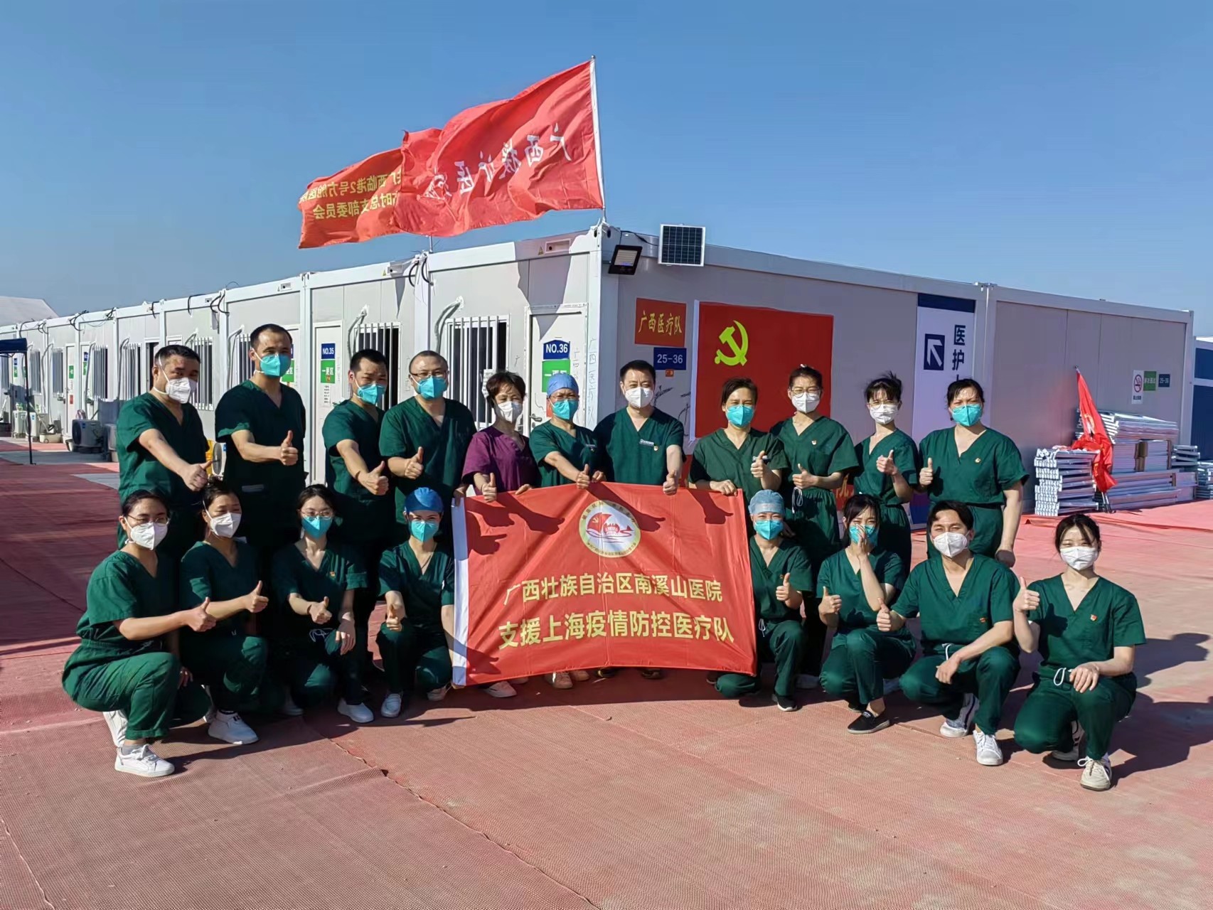 为庆祝五四青年节,激发青年爱党国爱院热情,弘扬伟大的抗疫精神,5月4日,广西壮族自治区南溪山医院援沪医疗队临时党支部重温了入党宣誓仪式,并通过视频连线的方式举办了一场别开生面的“不忘初心,牢记使命” 党史国史院史知识竞赛。