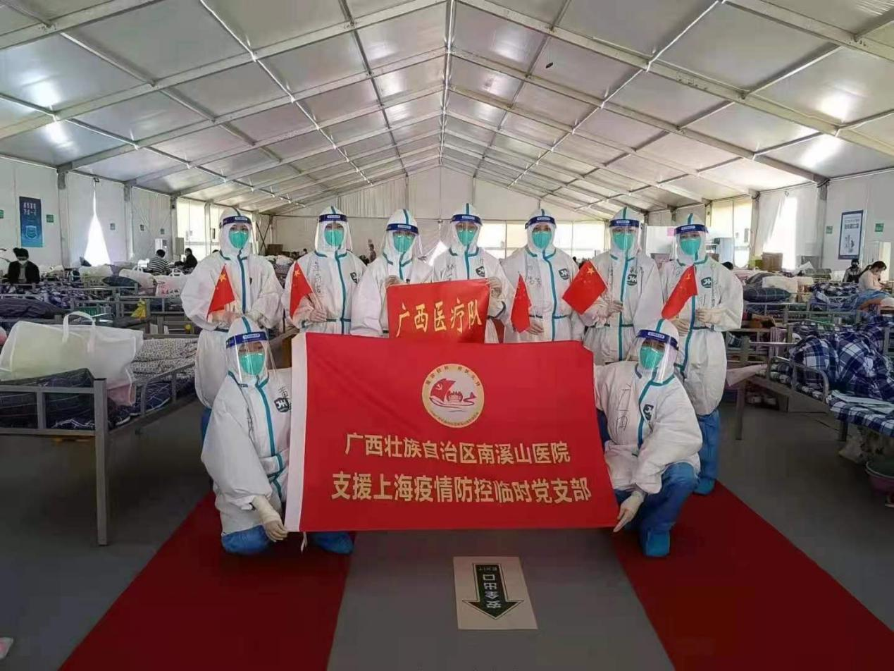 这5名队员唐麟翔、杨育友、江泰源,覃正贤、何洁,都是95后出生,是广西援沪医疗队第三分队队员,主要参与临港二号方舱定点医院和上海中医药大学附属曙光医院西院定点医院抗疫工作。