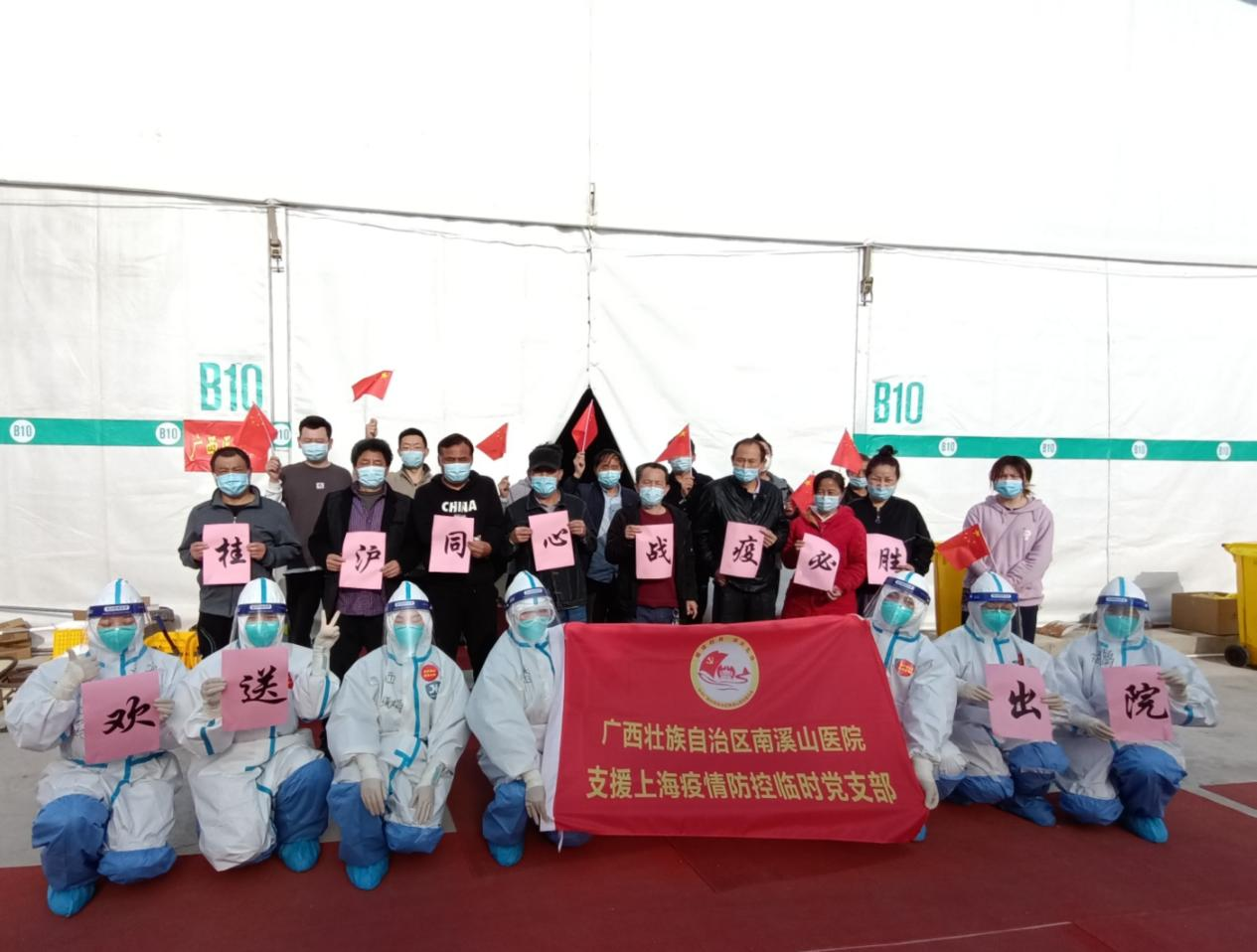 临港二号方舱定点医院欢送痊愈患者出院