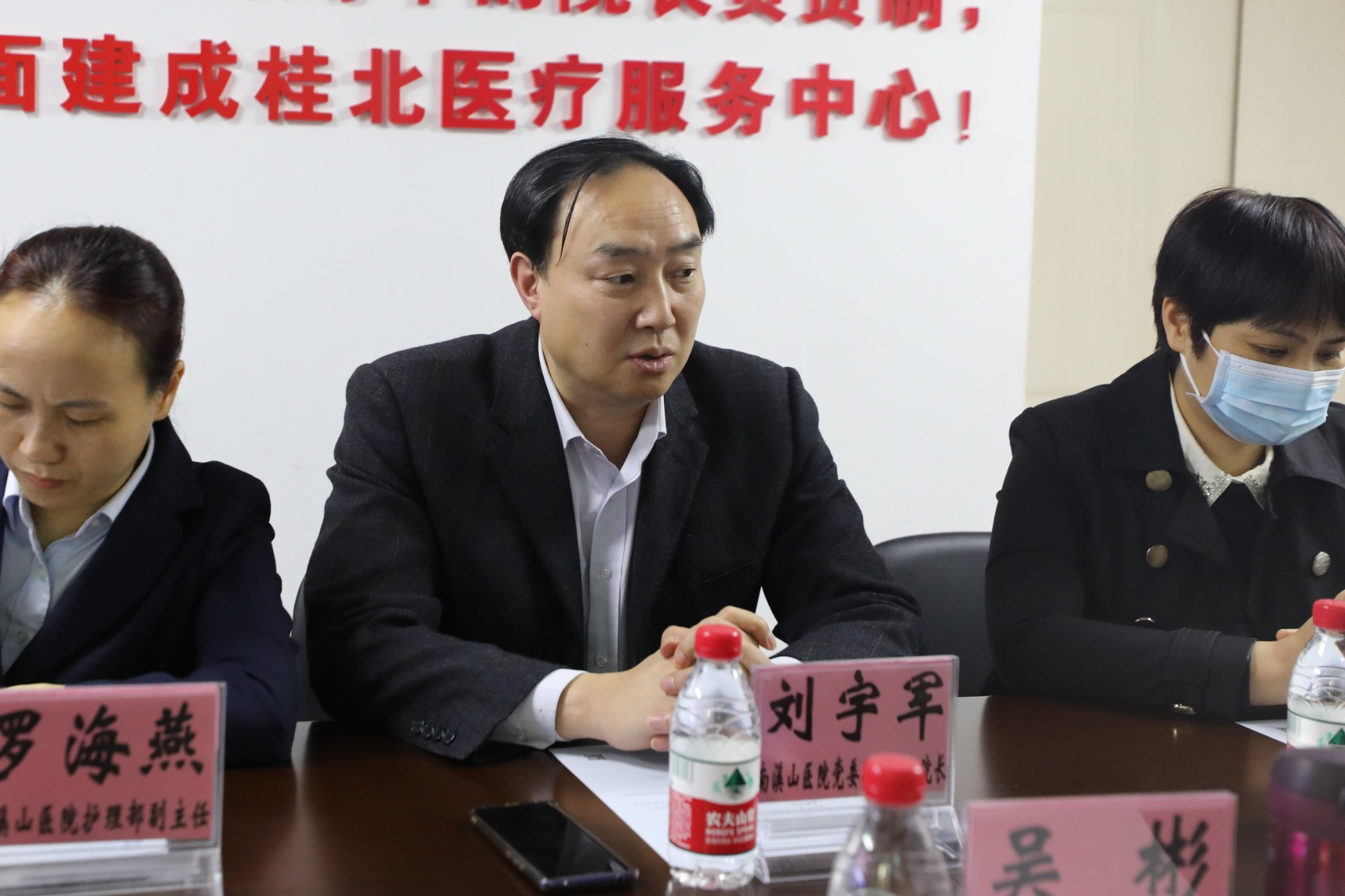 调研座谈会上,该院党委副书记、院长刘宇军向广西中医药大学护理学院对医院护理教学给予的帮助表示了感谢。他强调,目前医院实习生数量庞大,这对医院的实习带教工作提出了新的要求和挑战。要实现培养骨干师资队伍专业化,实现点对点培养方式,把培养学生临床思维放在首位,体现人文关怀,提高学生的社会担当能力和社会责任感,科室带教老师要不断提高自身带教水平。全院上下要同心协力,始终坚持医教研协同发展的理念,并落实医学高等院校教学纲要,巩固和建设好A级教学医院,为社会源源不断地输送优质的医疗人才。